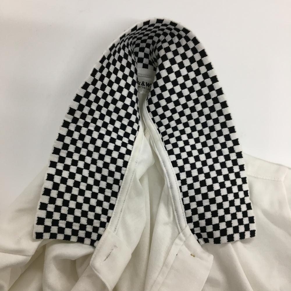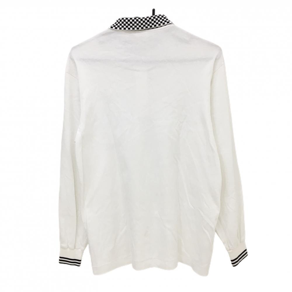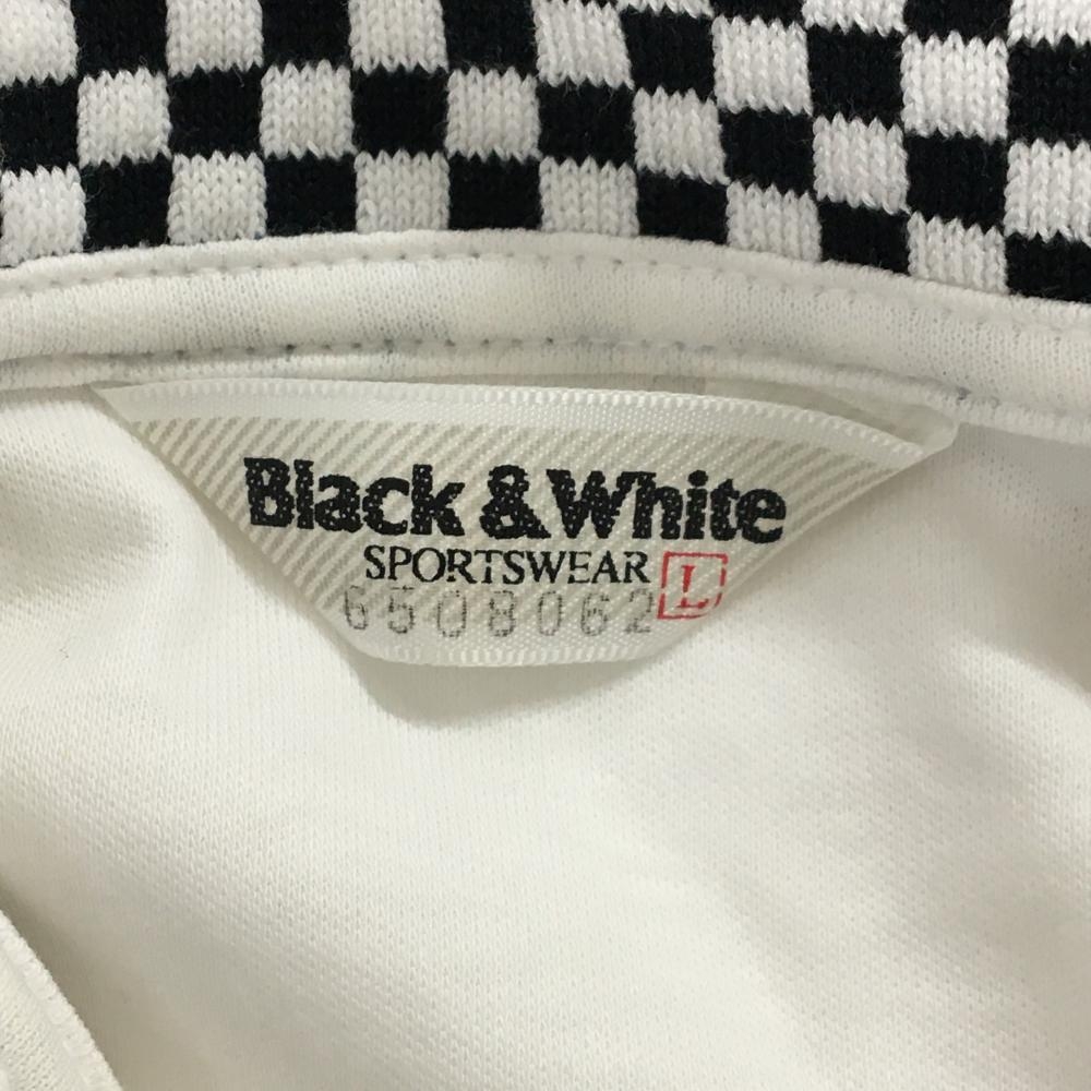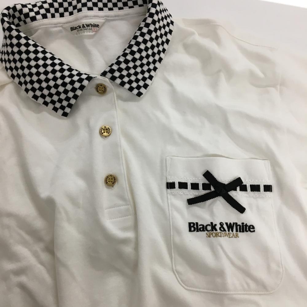 【美品】ブラックアンドホワイト 長袖ポロシャツ 白×黒 襟ブロックチェック 胸ポケットリボン レディース L ゴルフウェア Black&White