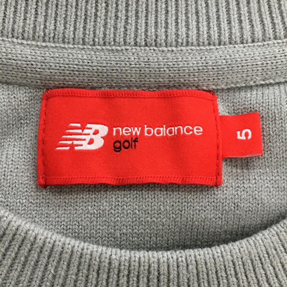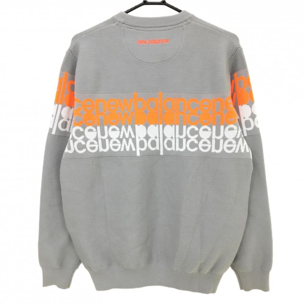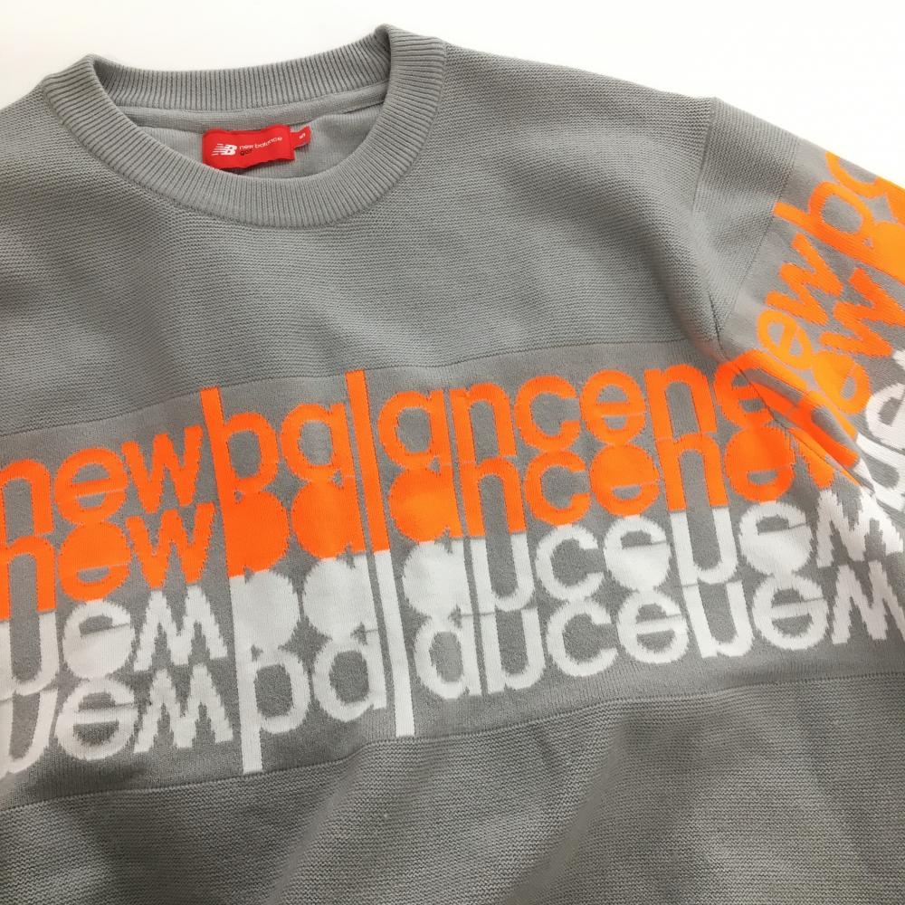 【超美品】ニューバランスゴルフ セーター グレー×蛍光オレンジ×白 ロゴ ニット メンズ 5(L) ゴルフウェア 2023年モデル New Balance