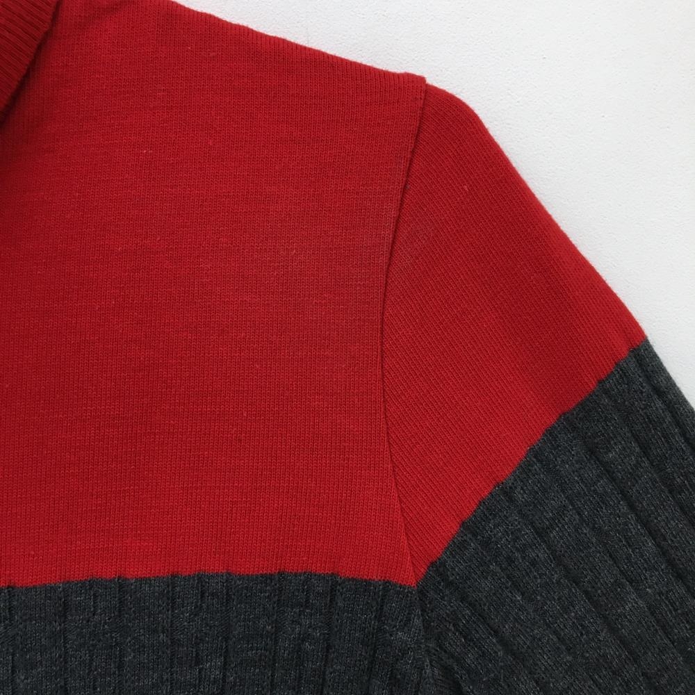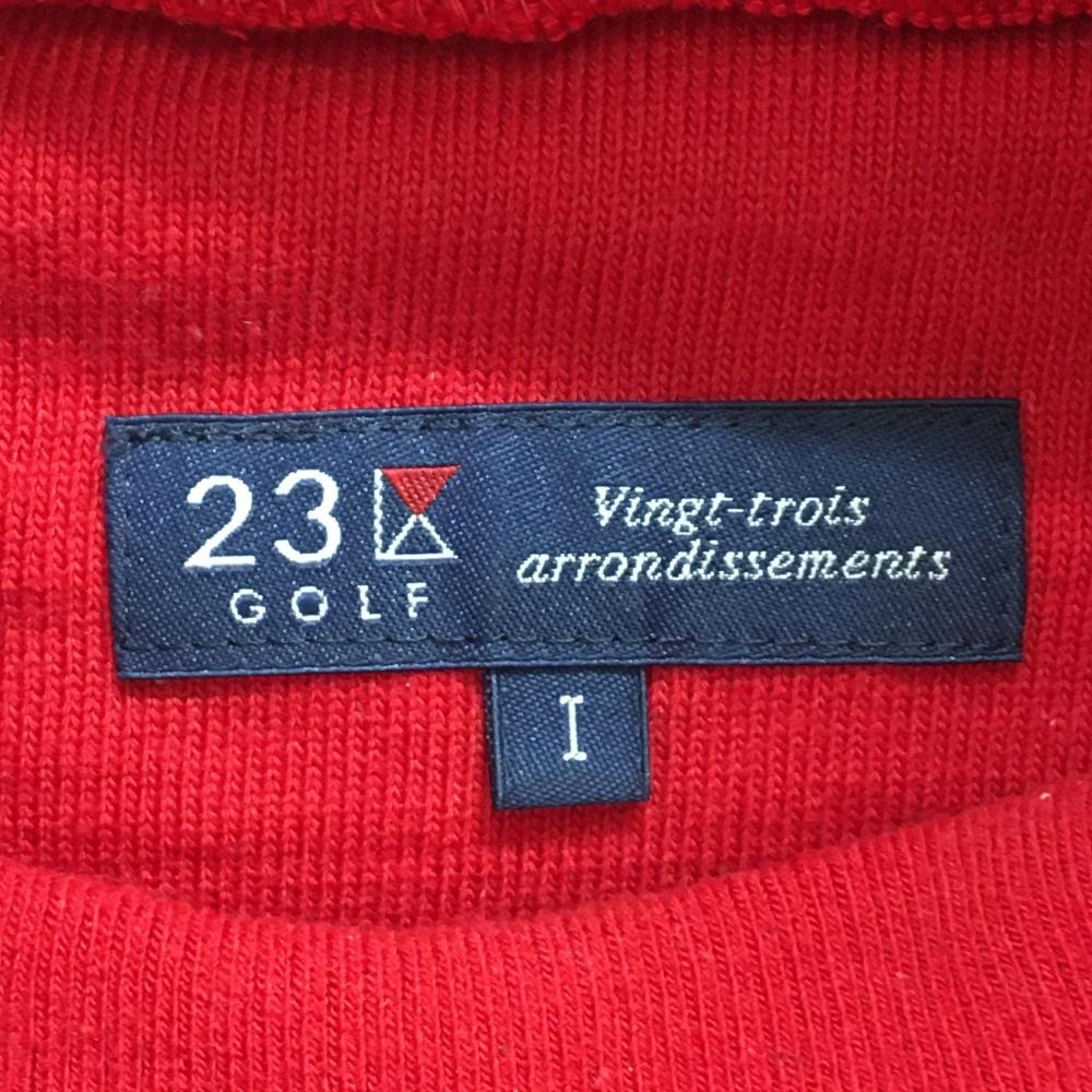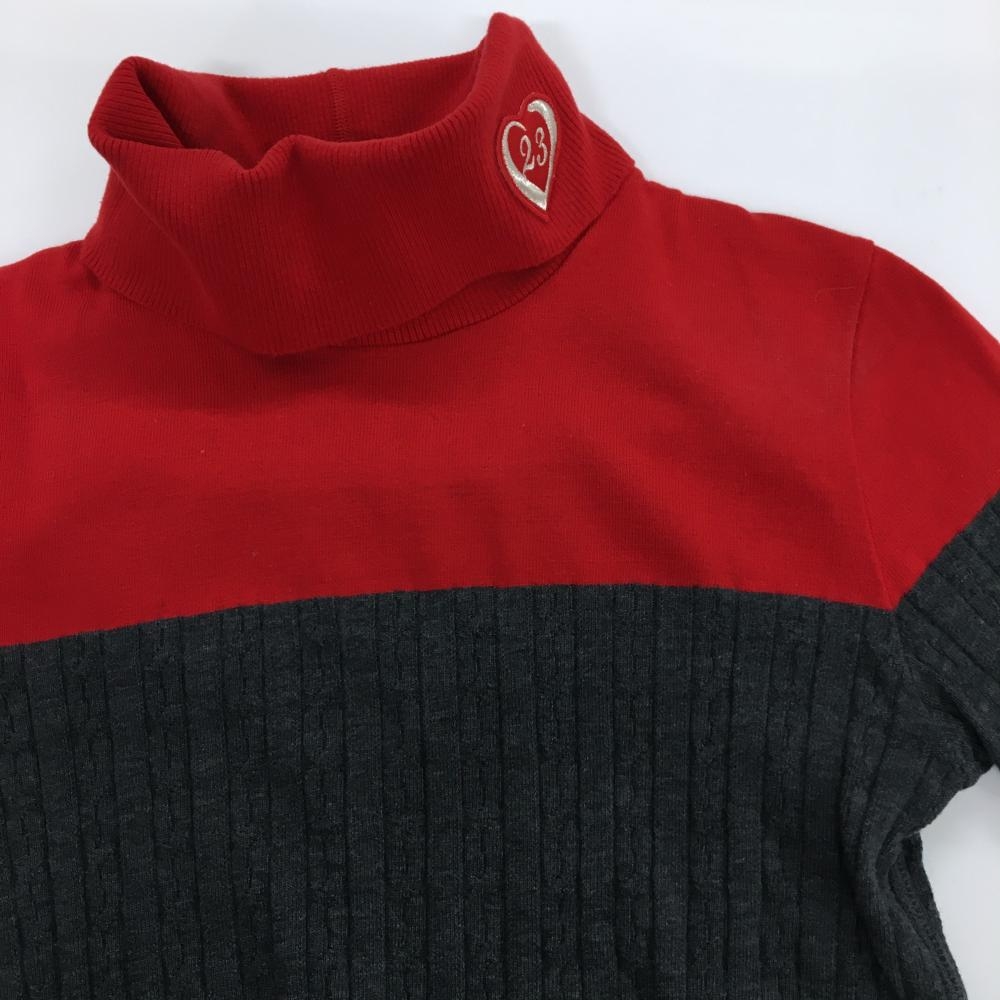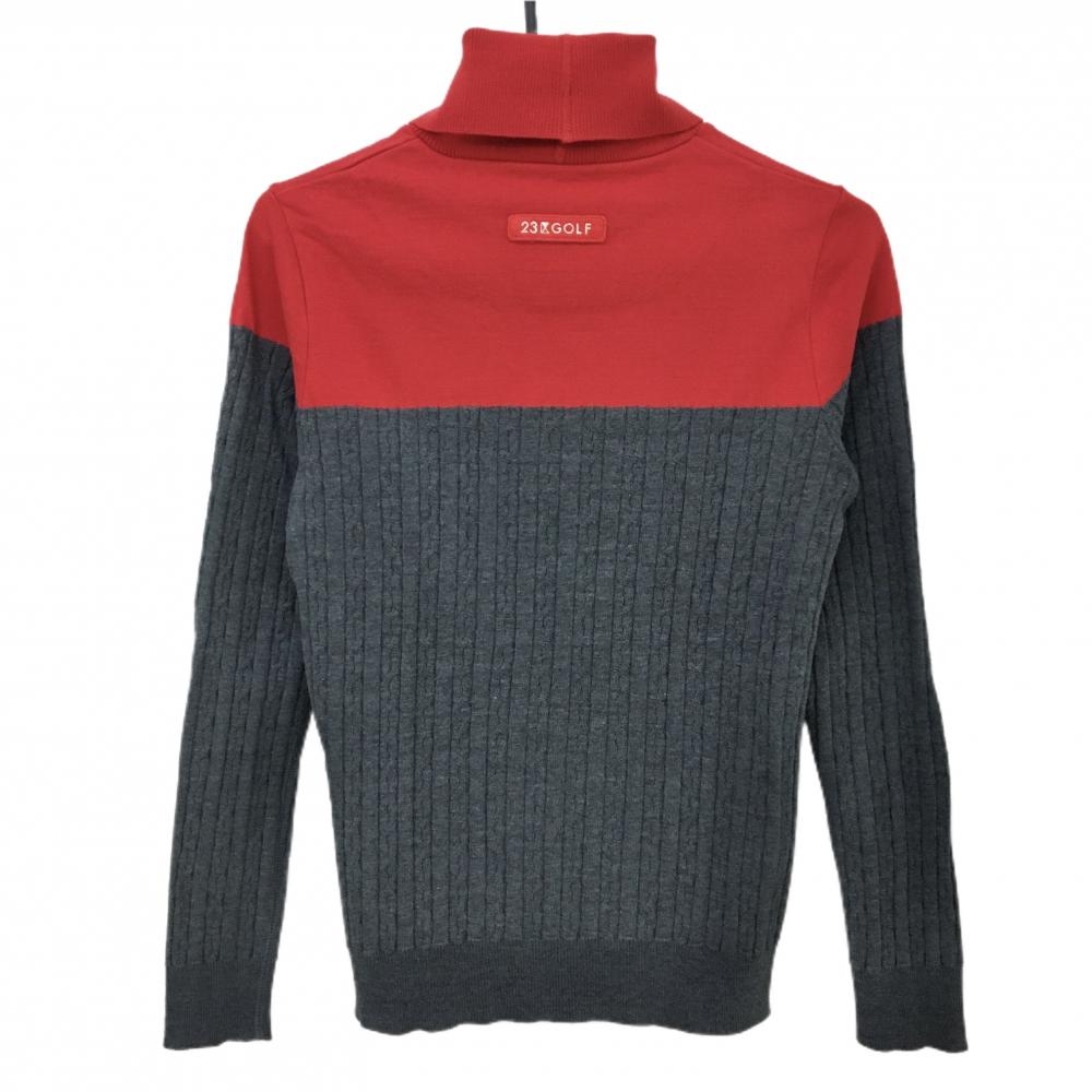 【美品】23区ゴルフ タートルネックセーター レッド×グレー 下部ケーブル編み ニット レディース I(M) ゴルフウェア 23区