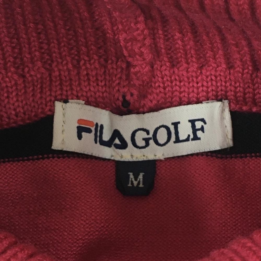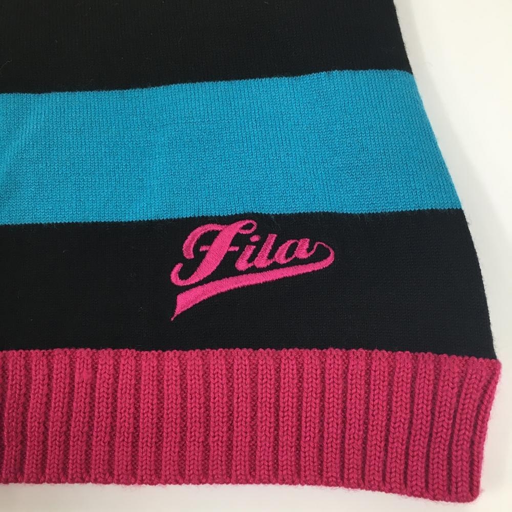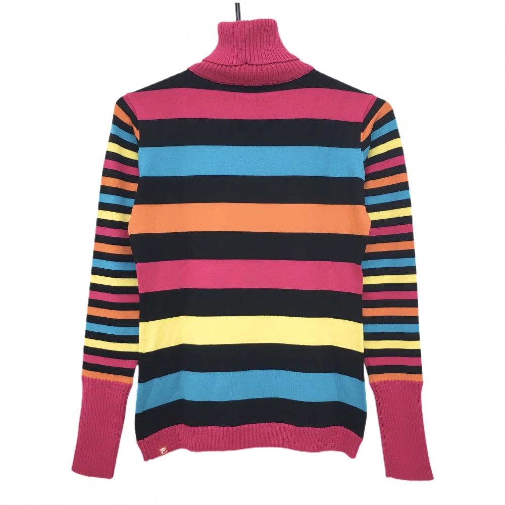 【超美品】フィラゴルフ タートルネックセーター ピンク×マルチカラー ボーダー ウール混 ニット レディース M ゴルフウェア FILA GOLF