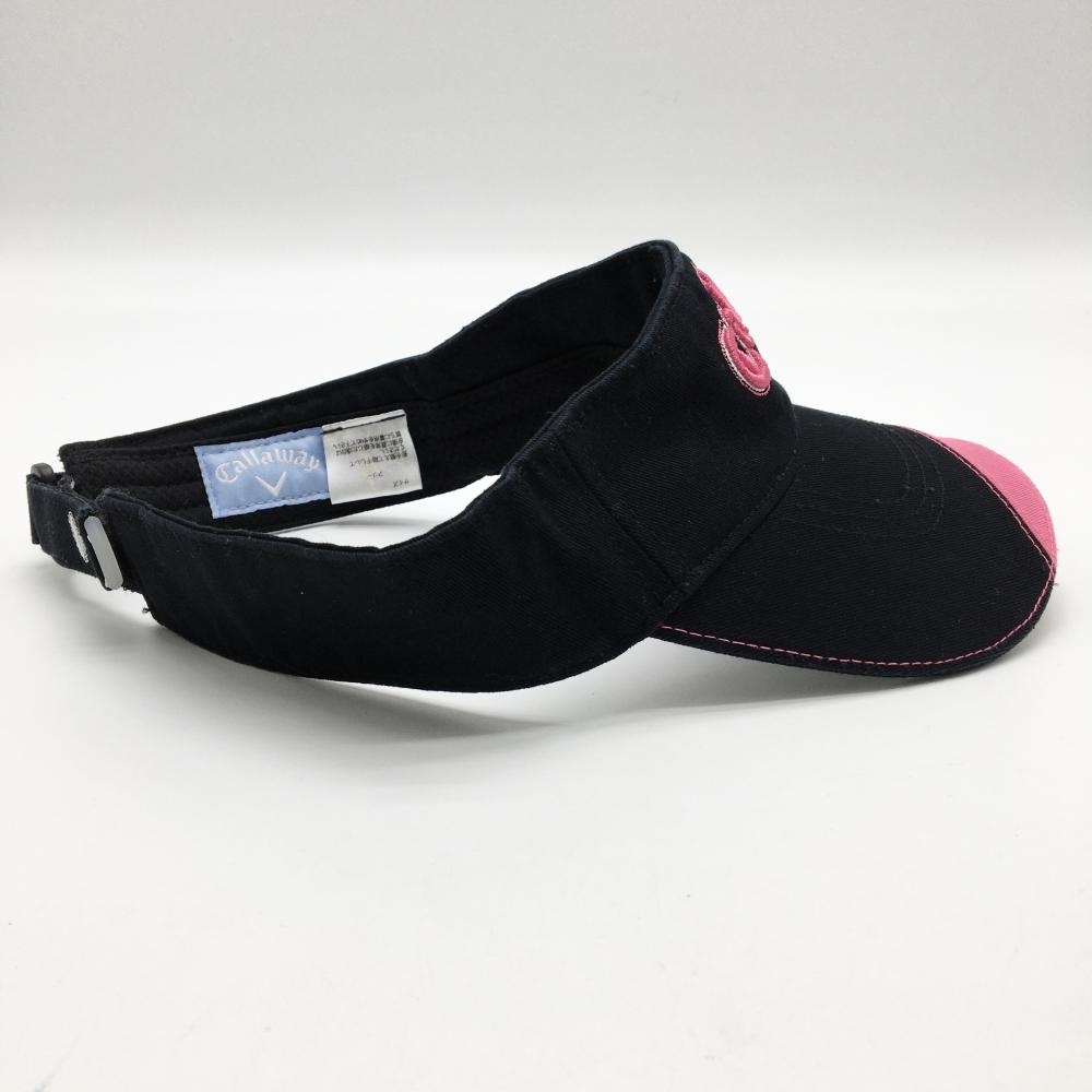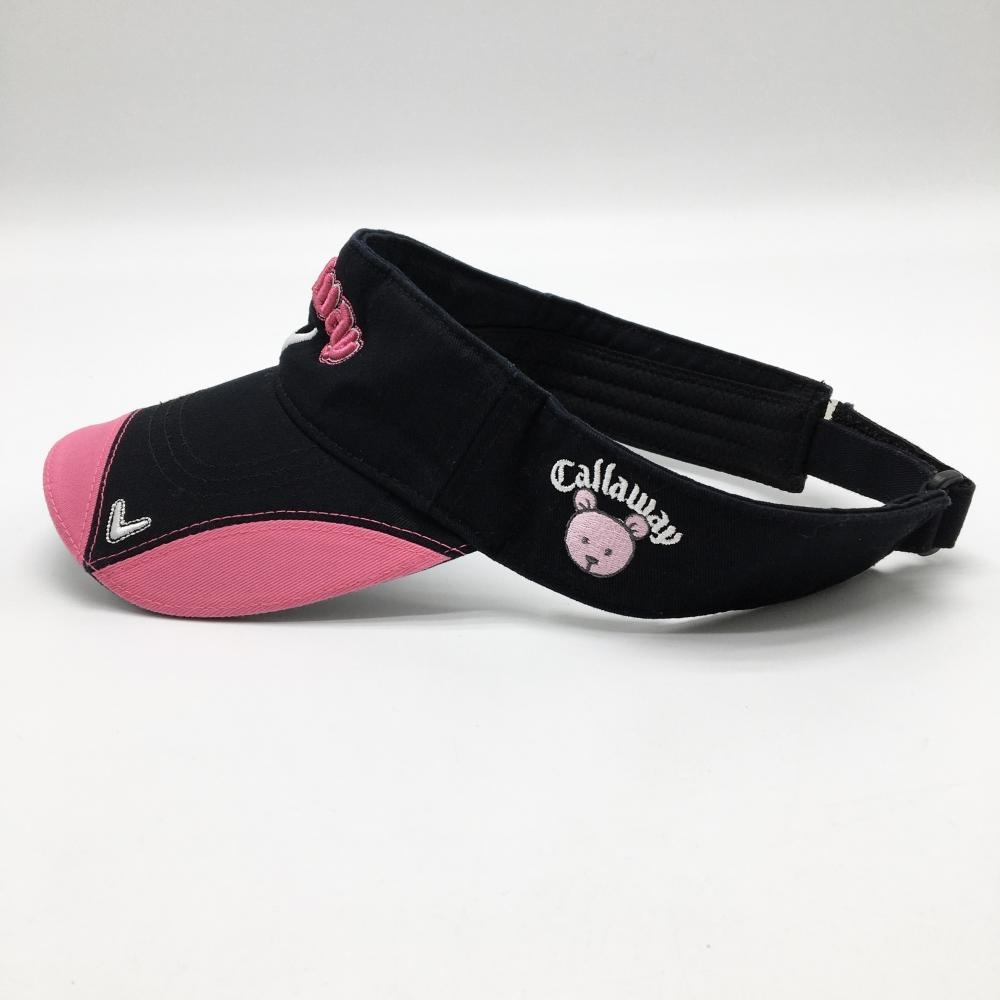 【美品】キャロウェイ サンバイザー 黒×ピンク ベア 綿100% 立体ロゴ レディース フリー ゴルフウェア Callaway