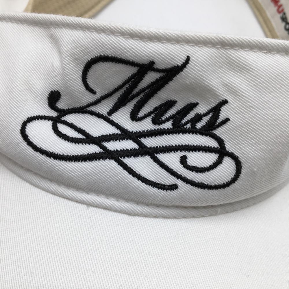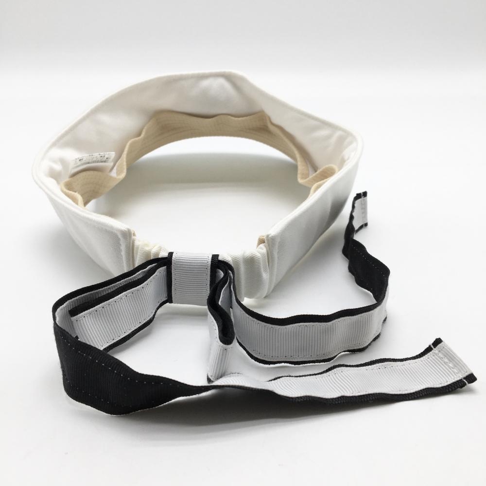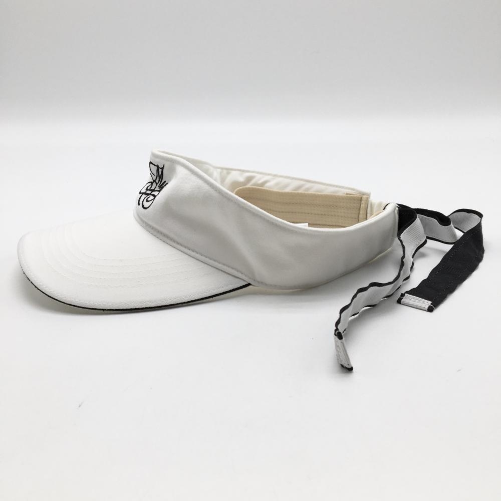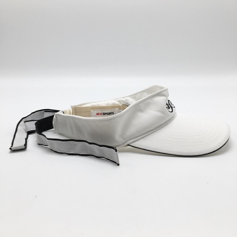 【美品】MUスポーツ サンバイザー 白×黒 リボン レディース F ゴルフウェア M・U SPORTS