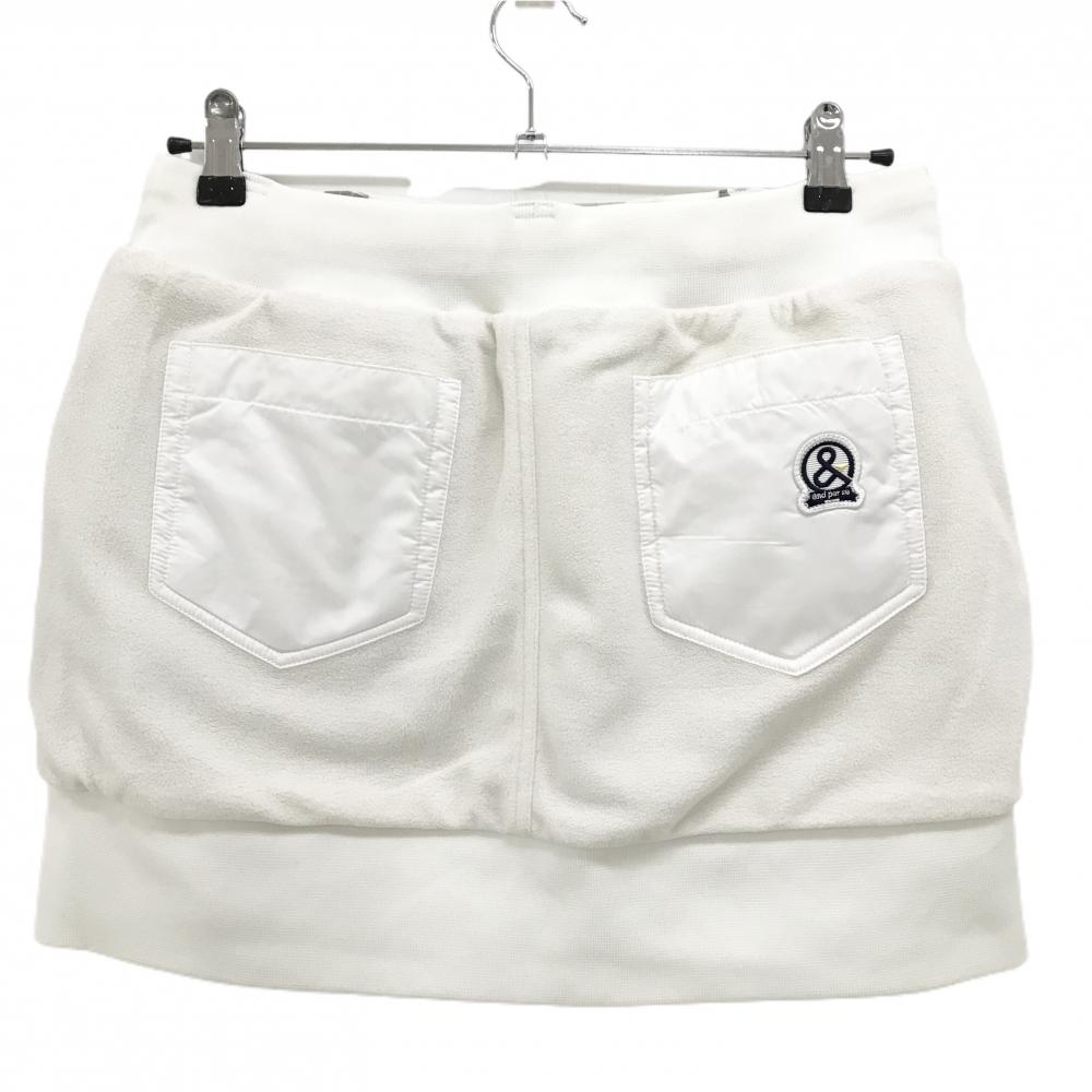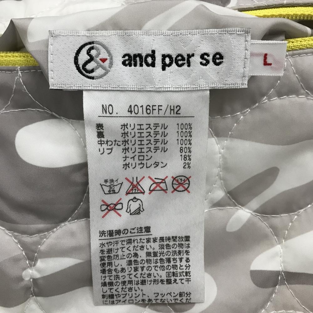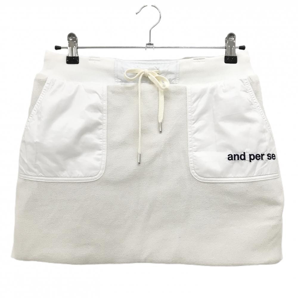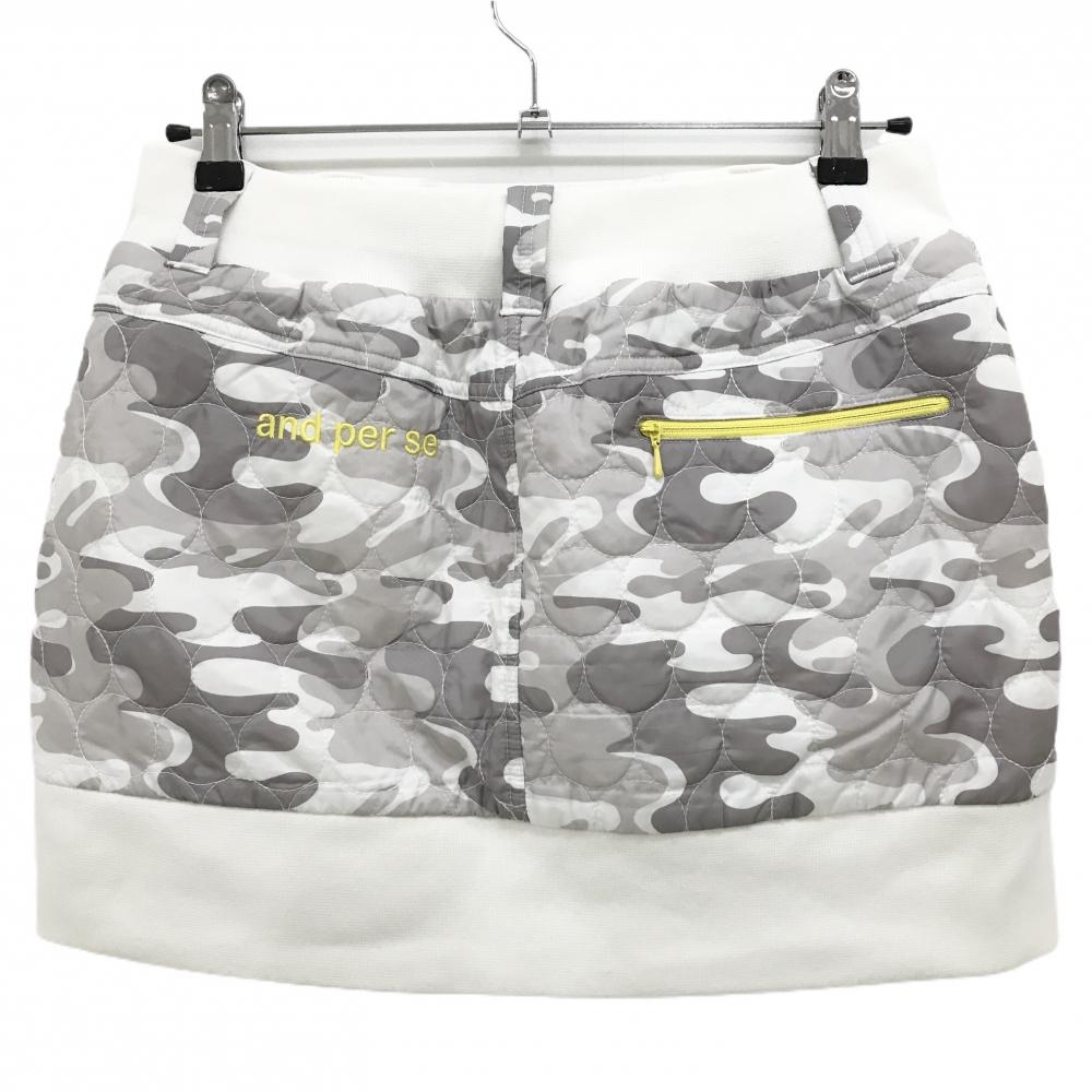 【美品】アンパスィ リバーシブル中綿スカート 白×グレージュ カモフラ 迷彩 裏フリース地 レディース L ゴルフウェア and per se