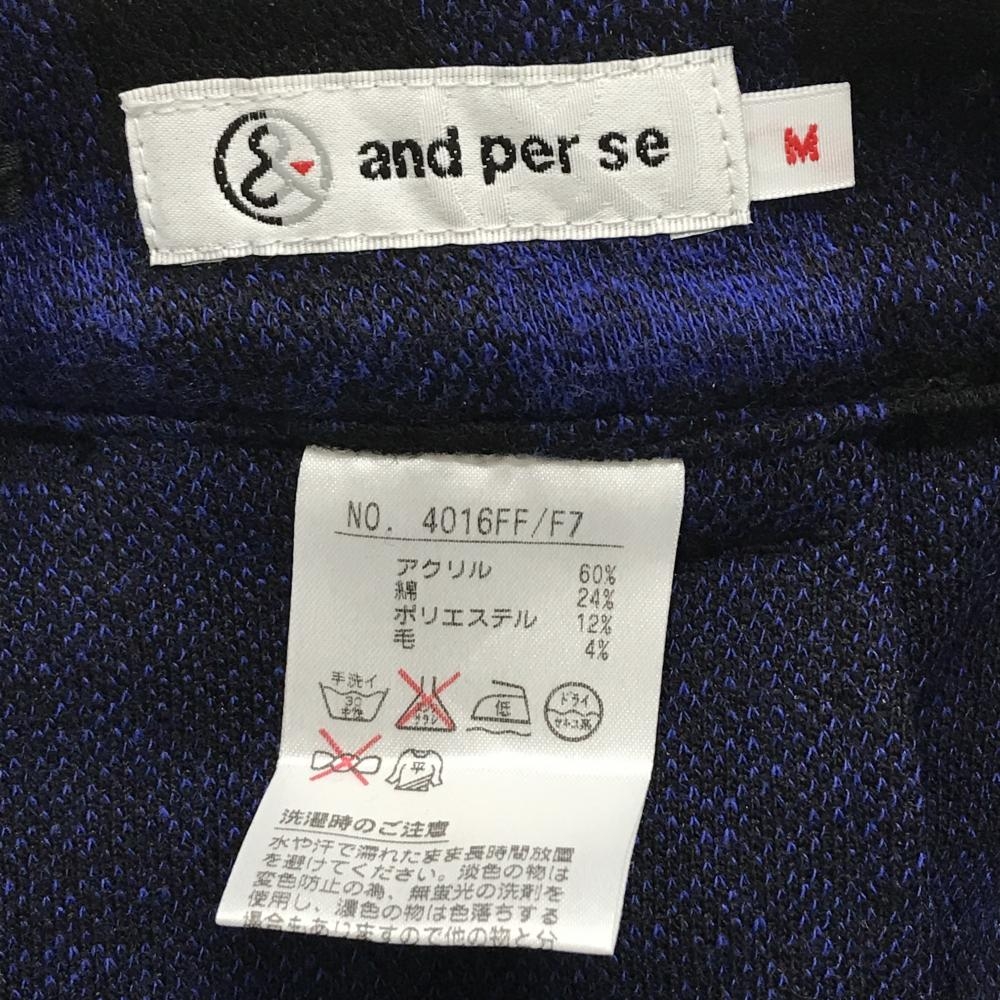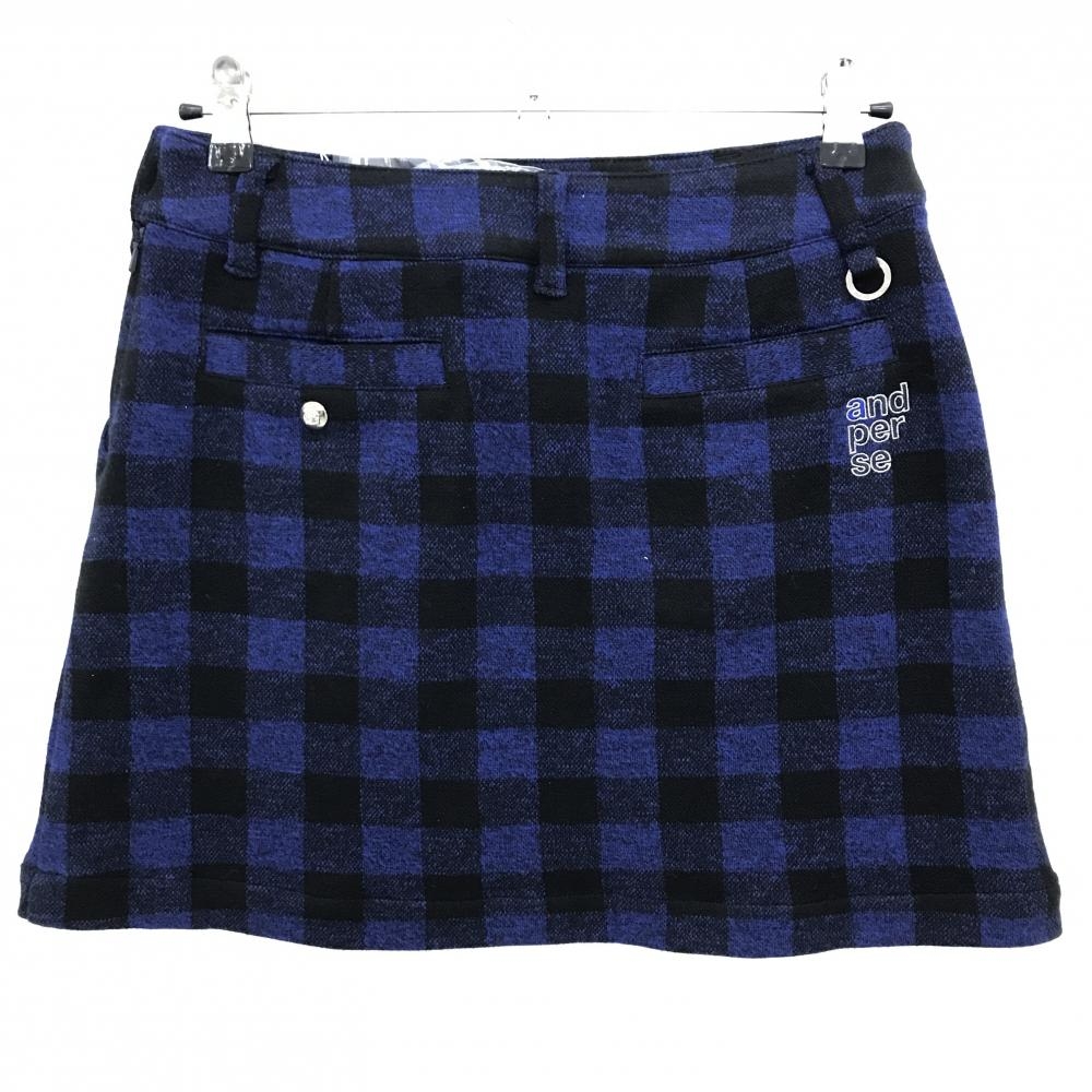 【新品】アンパスィ ニットスカート ネイビー×白 チェック インナーパンツ付 レディース M ゴルフウェア and per se