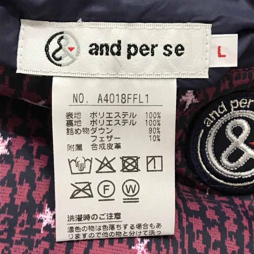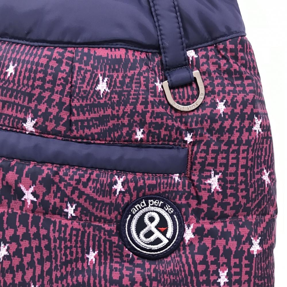 【美品】アンパスィ ダウンスカート ネイビー×ピンク 総柄 星柄 レディース L ゴルフウェア and per se