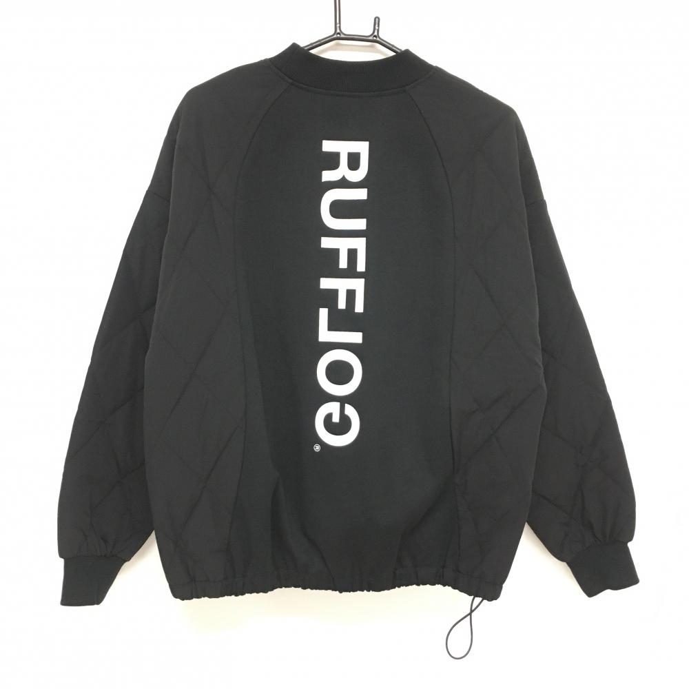 【美品】ラフロッグ 中綿ハイネックトレーナー 黒 袖・サイド中綿 スウェット×中綿 メンズ M ゴルフウェア RUFFLOG