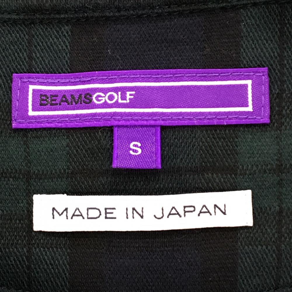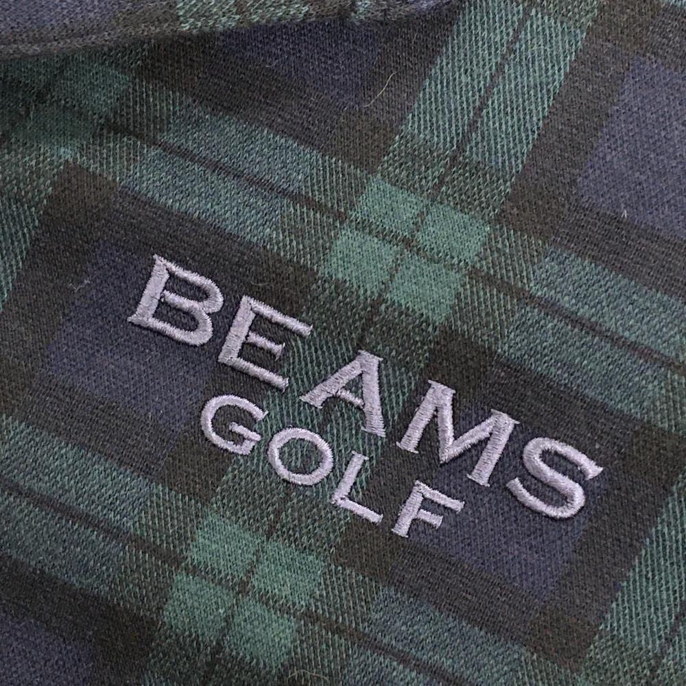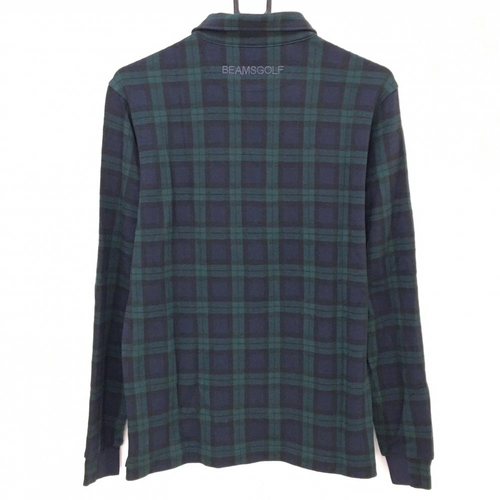 【超美品】ビームスゴルフ 長袖ポロシャツ グリーン×ネイビー チェック アクリル混 メンズ S ゴルフウェア 2024年モデル BEAMS GOLF
