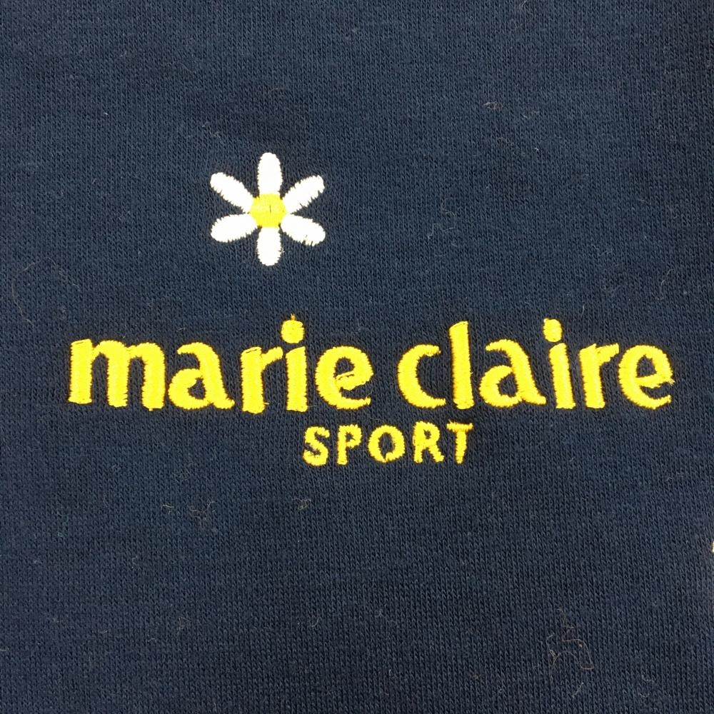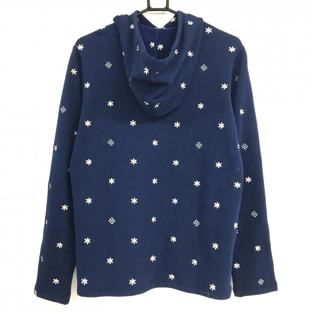 【超美品】マリクレールスポール パーカー ネイビー×白 花刺しゅう柄 裏起毛 レディース LL ゴルフウェア marie claire