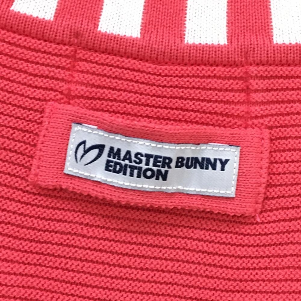 【美品】マスターバニー セーター ピンクレッド コットン混 Vネック ニット レディース 1(M) ゴルフウェア MASTER BUNNY EDITION