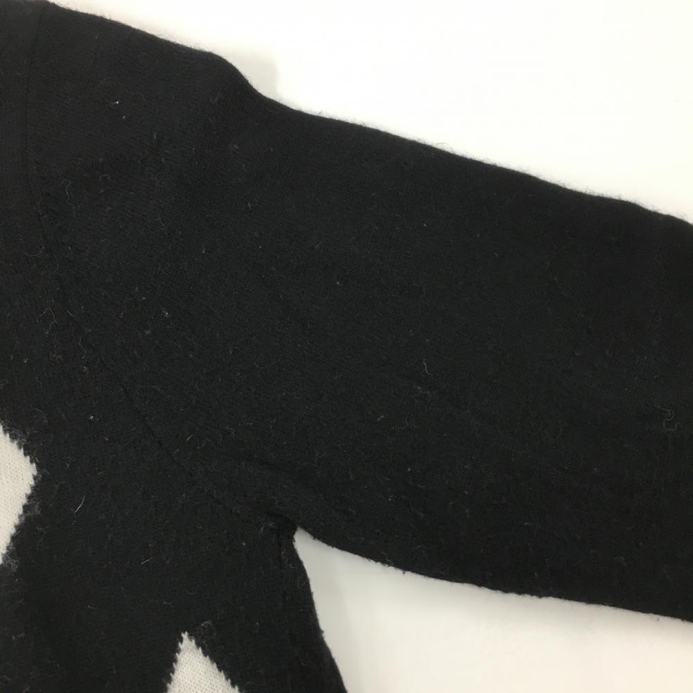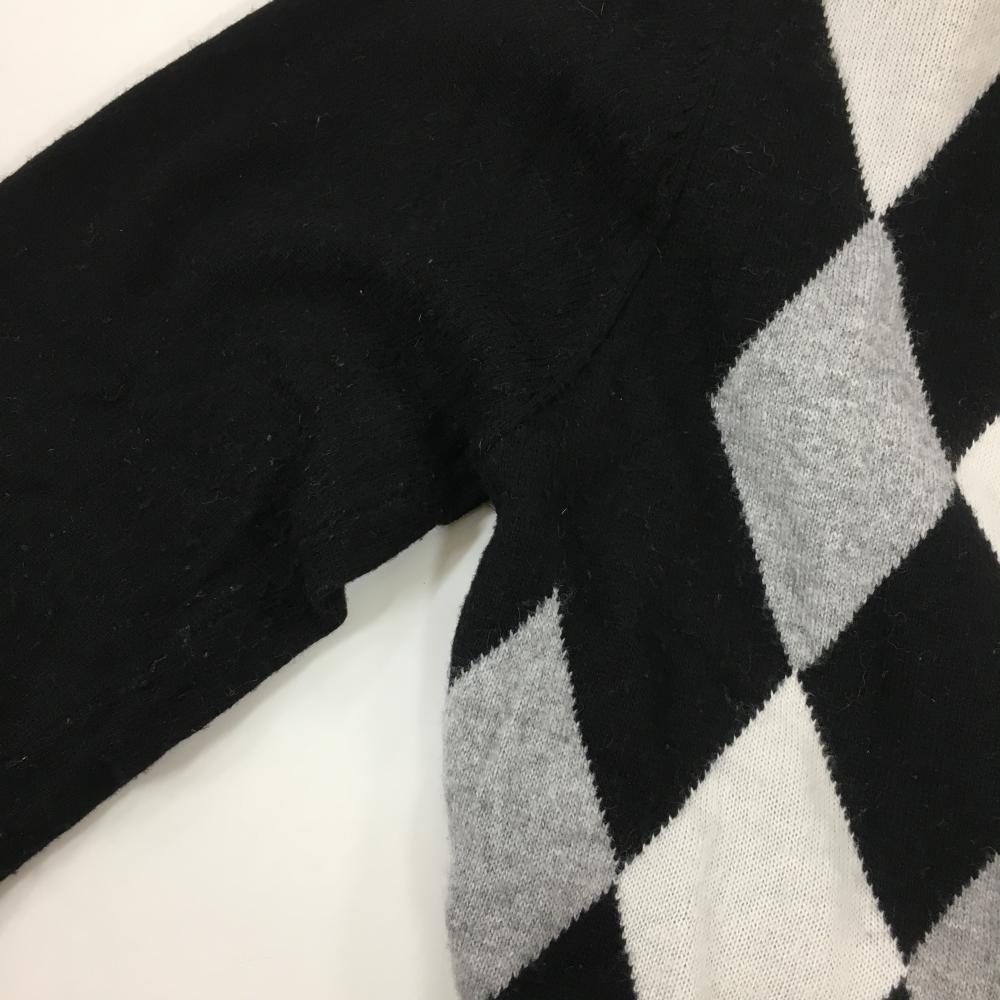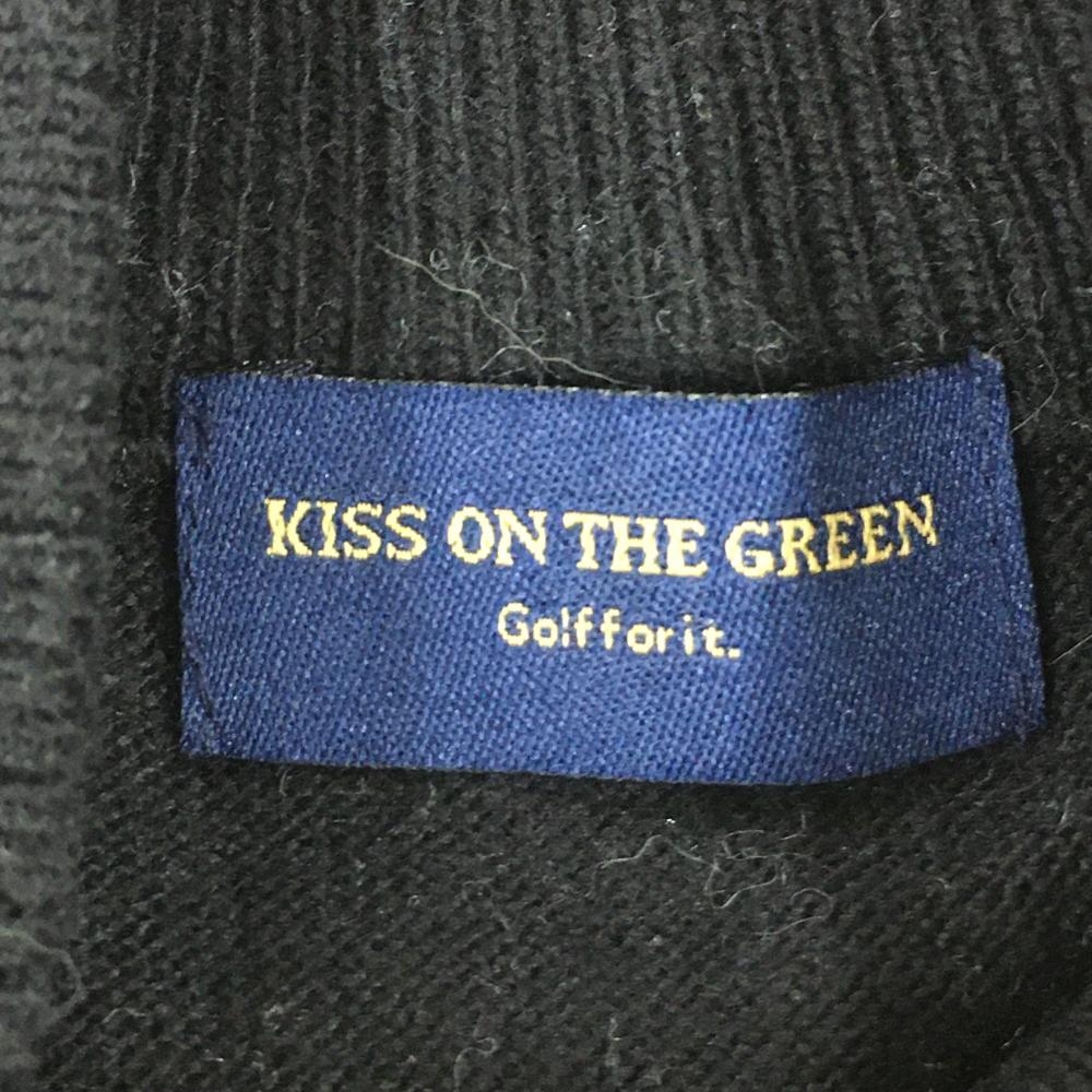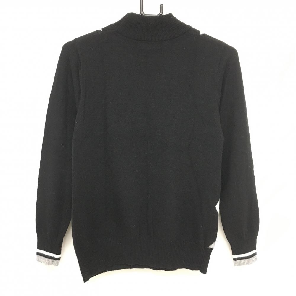 キスオンザグリーン ハイネックセーター 黒×グレー 前身頃ダイヤ柄 ワッペン ニット レディース 2(M) ゴルフウェア kiss on the green