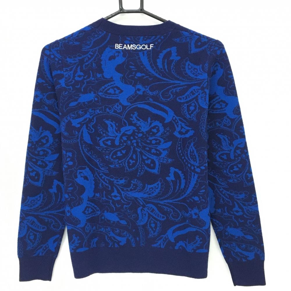 【超美品】ビームスゴルフ セーター ブルー×ネイビー 総柄 ニット レディース M ゴルフウェア BEAMS GOLF