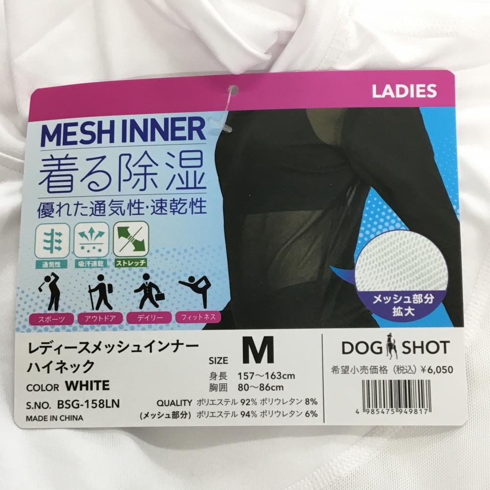 【新品】ドッグショット ハイネックインナーシャツ 白 メッシュ生地 ストレッチ レディース M ゴルフウェア DOG SHOT