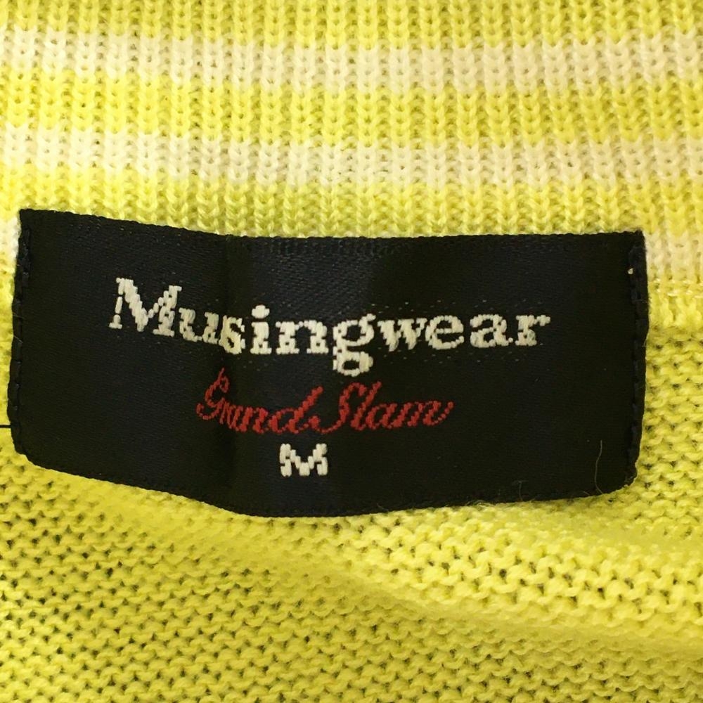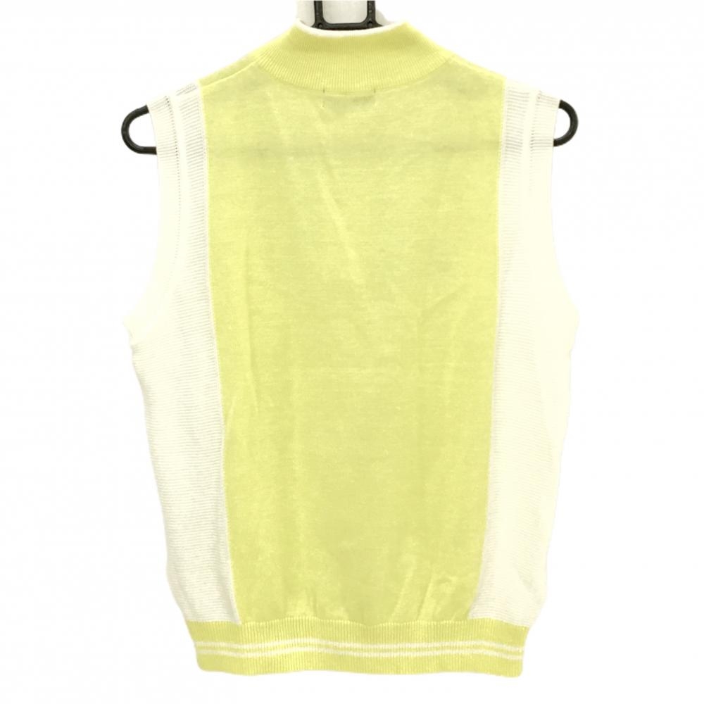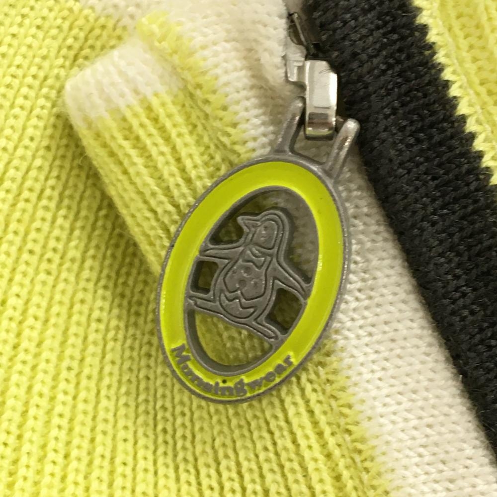 【美品】マンシングウェア ニットベスト イエロー×白 ハーフジップ 裾ライン レディース M ゴルフウェア Munsingwear
