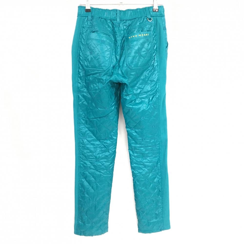 ビバハート 中綿パンツ ブルーグリーン キルティング リボン刺しゅう 裏起毛 レディース 40(M) ゴルフウェア VIVA HEART