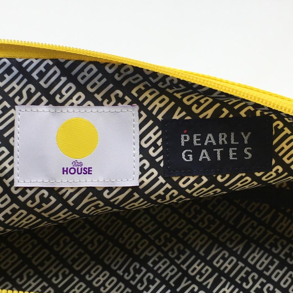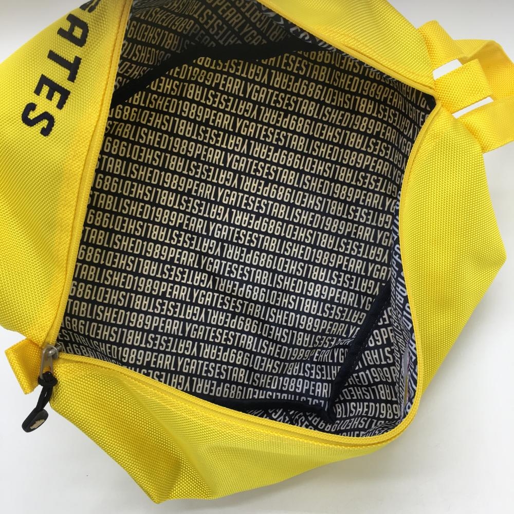 【超美品】パーリーゲイツ シューズケース イエロー×ネイビー 内側英字総柄 ロゴ刺しゅう the HOUSEゴルフ PEARLY GATES