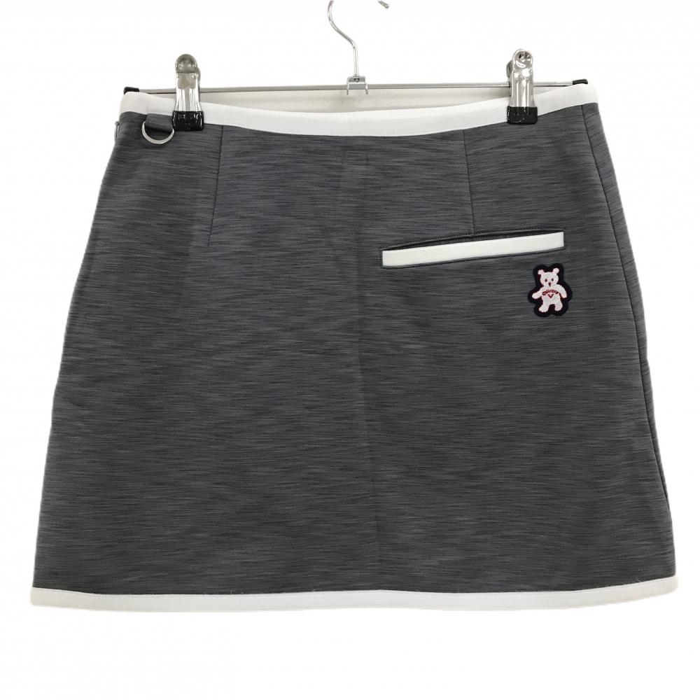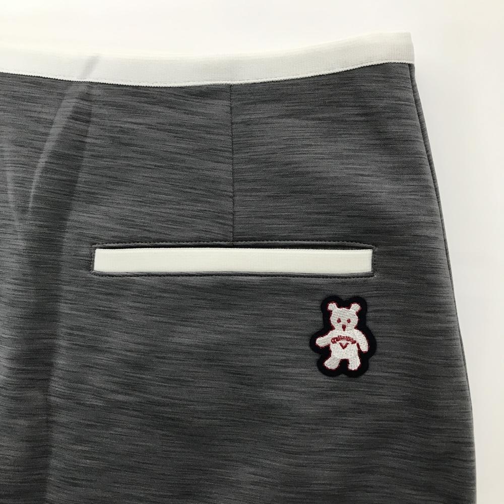 【美品】キャロウェイ スカート 木グレー×白 フロントボタン クマワッペン 裏起毛 レディース M ゴルフウェア サンプル品 Callaway