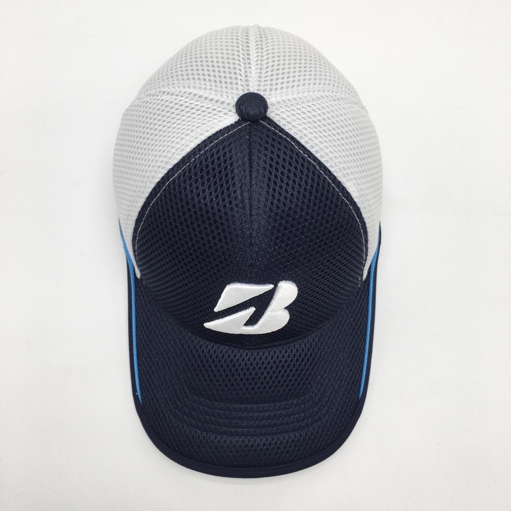 【超美品】ブリヂストン メッシュキャップ ネイビー×白 立体ロゴ刺しゅう フリーサイズ(約56~59cm) ゴルフウェア Bridgestone