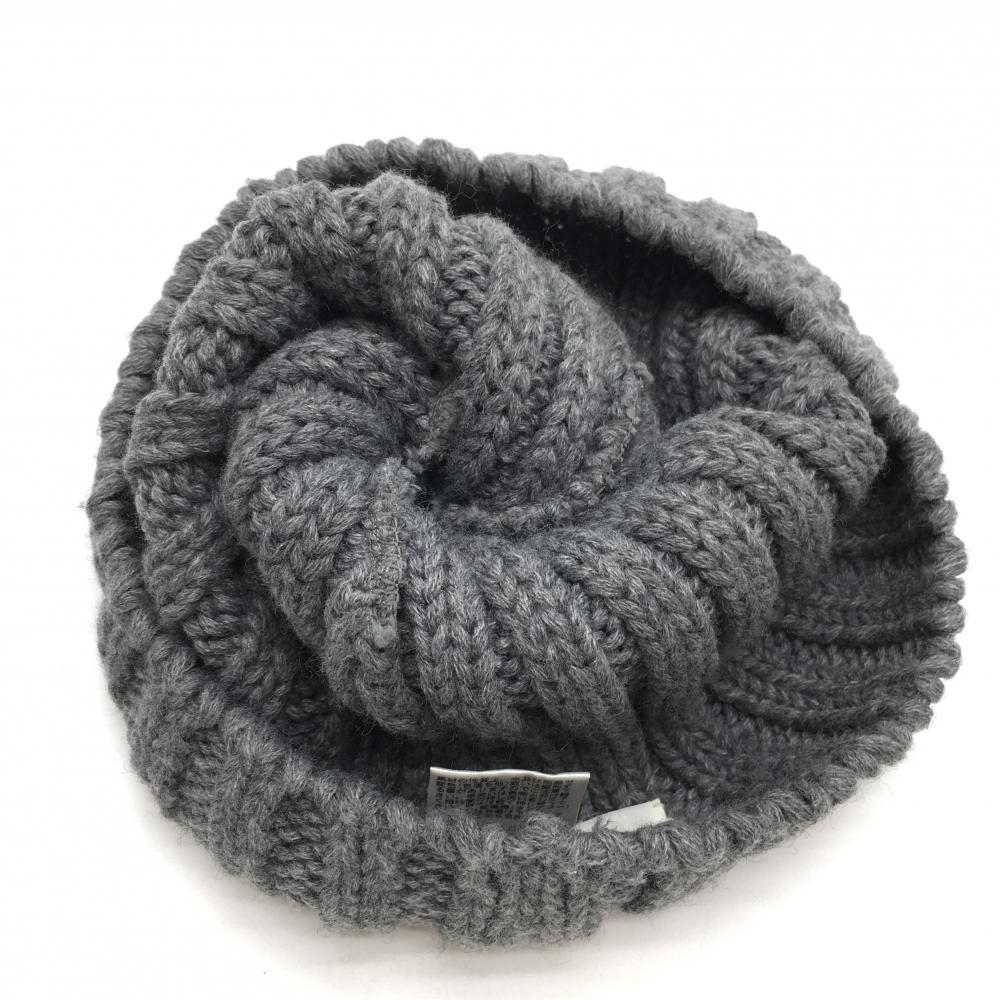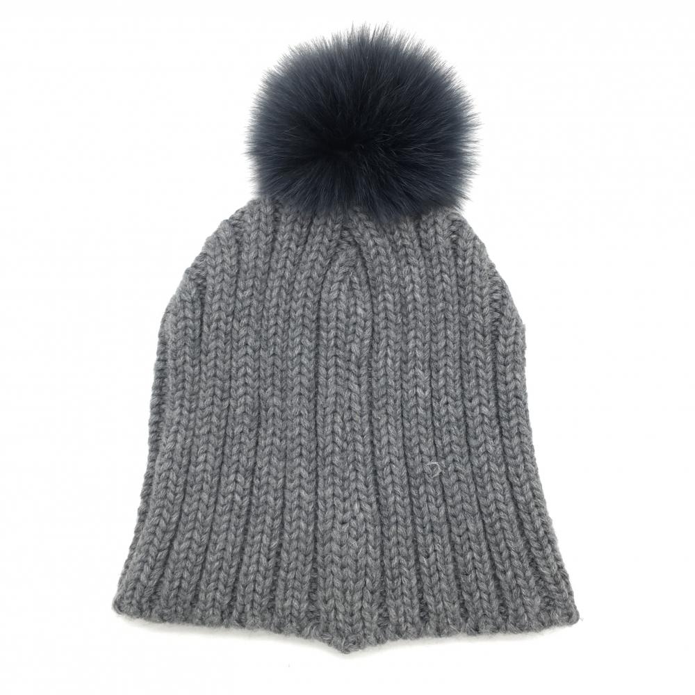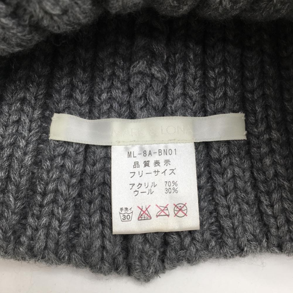 【美品】マークアンドロナ ニット帽 グレー ボンボン付 フリーサイズ ゴルフウェア MARK&LONA