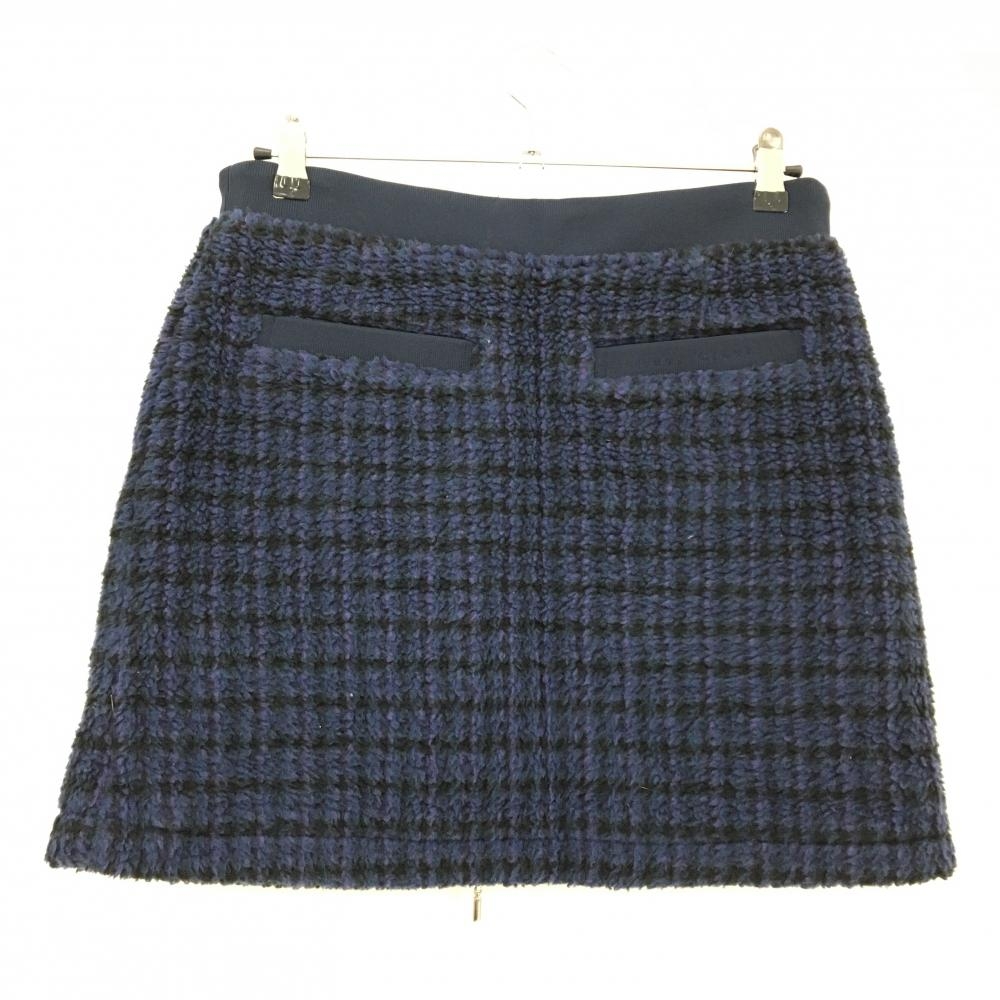 【美品】ヒールクリーク ボアスカート ダークネイビー×パープル チェック風 フロントジップ レディース 42(L) ゴルフウェア Heal Creek