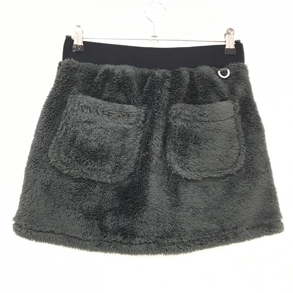 ビバハート ボアスカート グレー×黒 ロゴ刺しゅう ウエストゴム レディース 40(M) ゴルフウェア VIVA HEART
