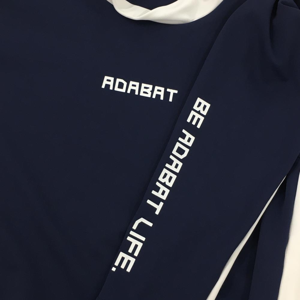 【超美品】アダバット 長袖ハイネックシャツ ネイビー×白 ロゴプリント メンズ 48(L) ゴルフウェア adabat