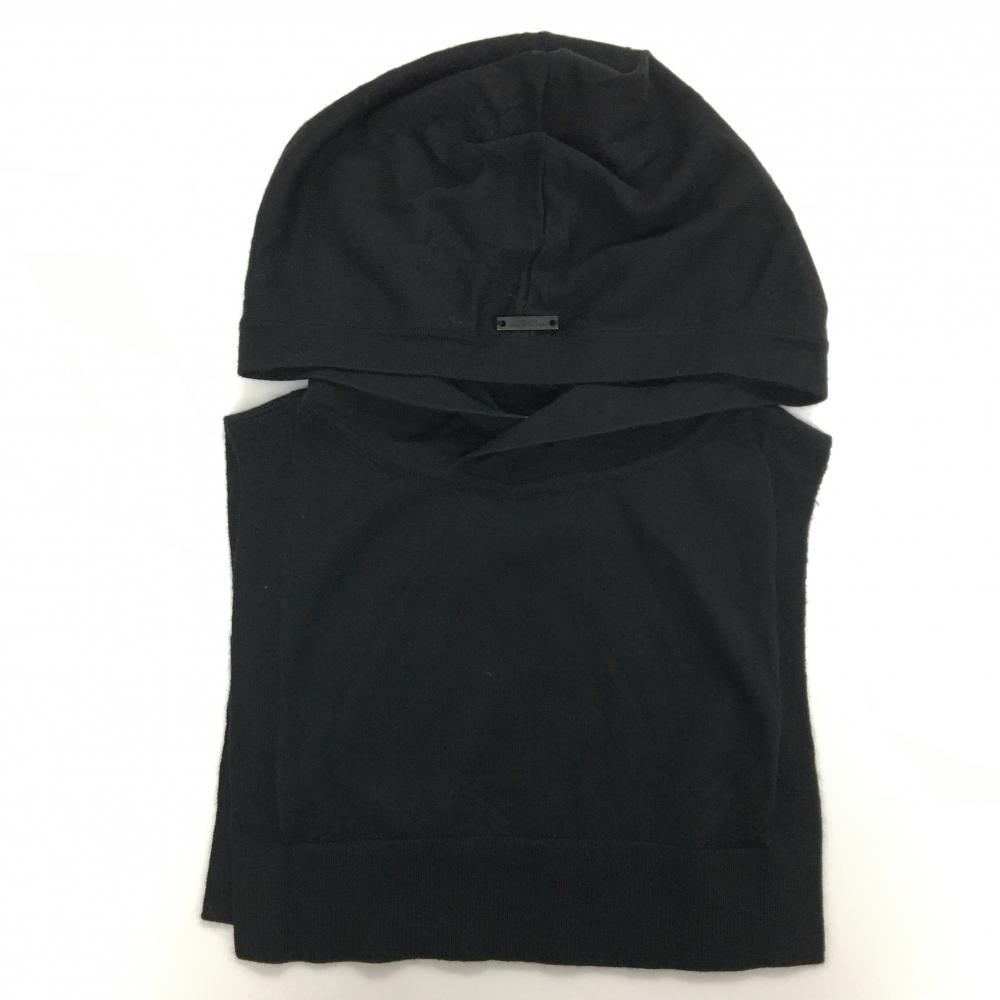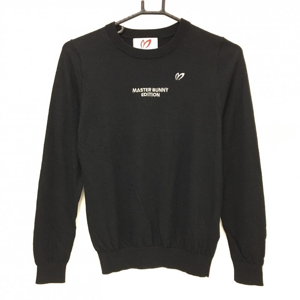 【超美品】マスターバニー フード付セーター 黒 ロゴ白 カシミヤ混 フード取外し可 レディース 0(S) ゴルフウェア MASTER BUNNY EDITION