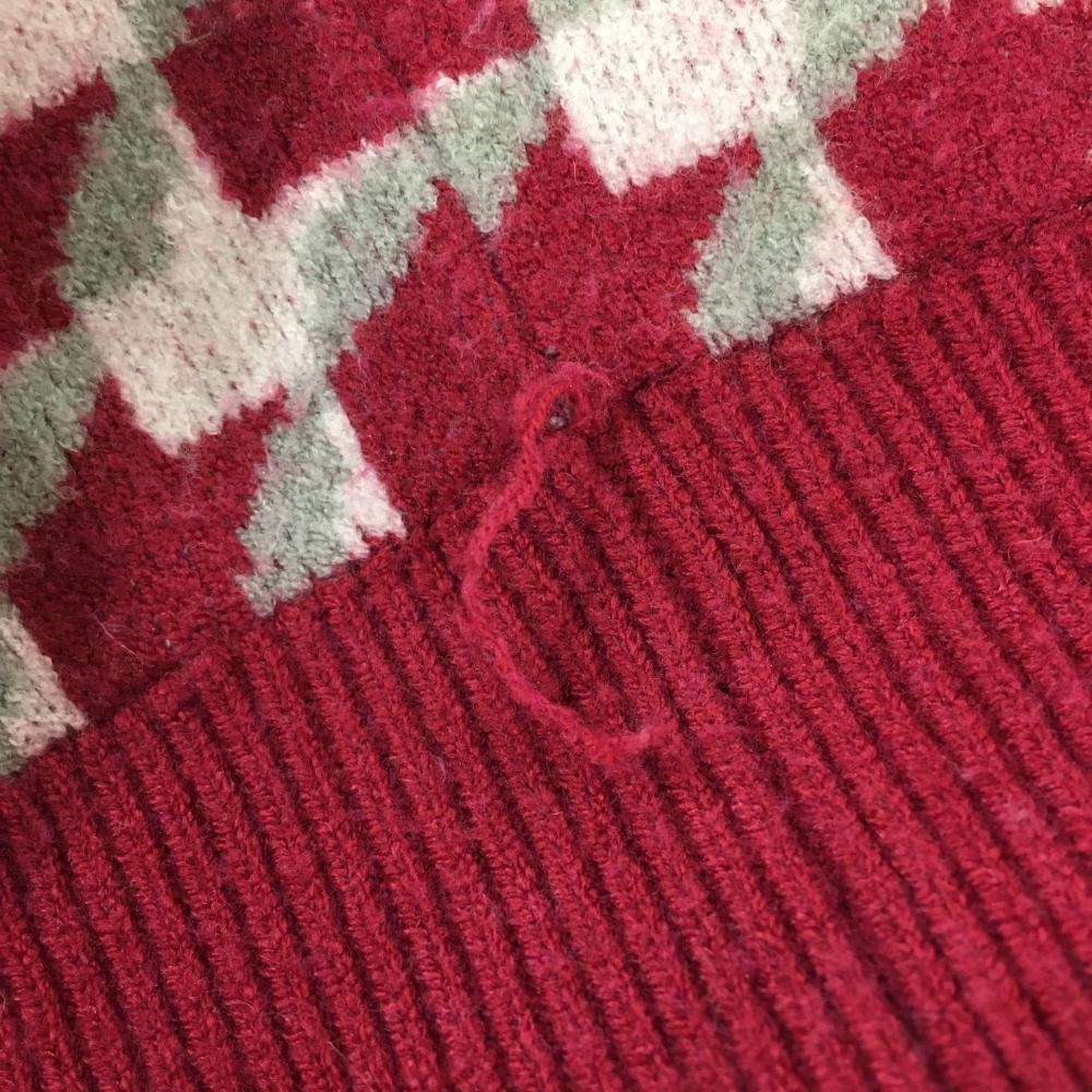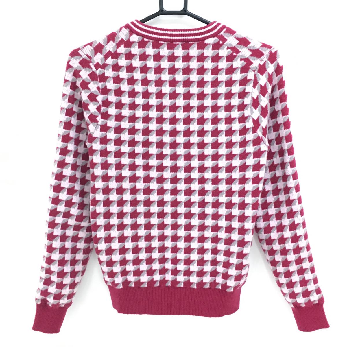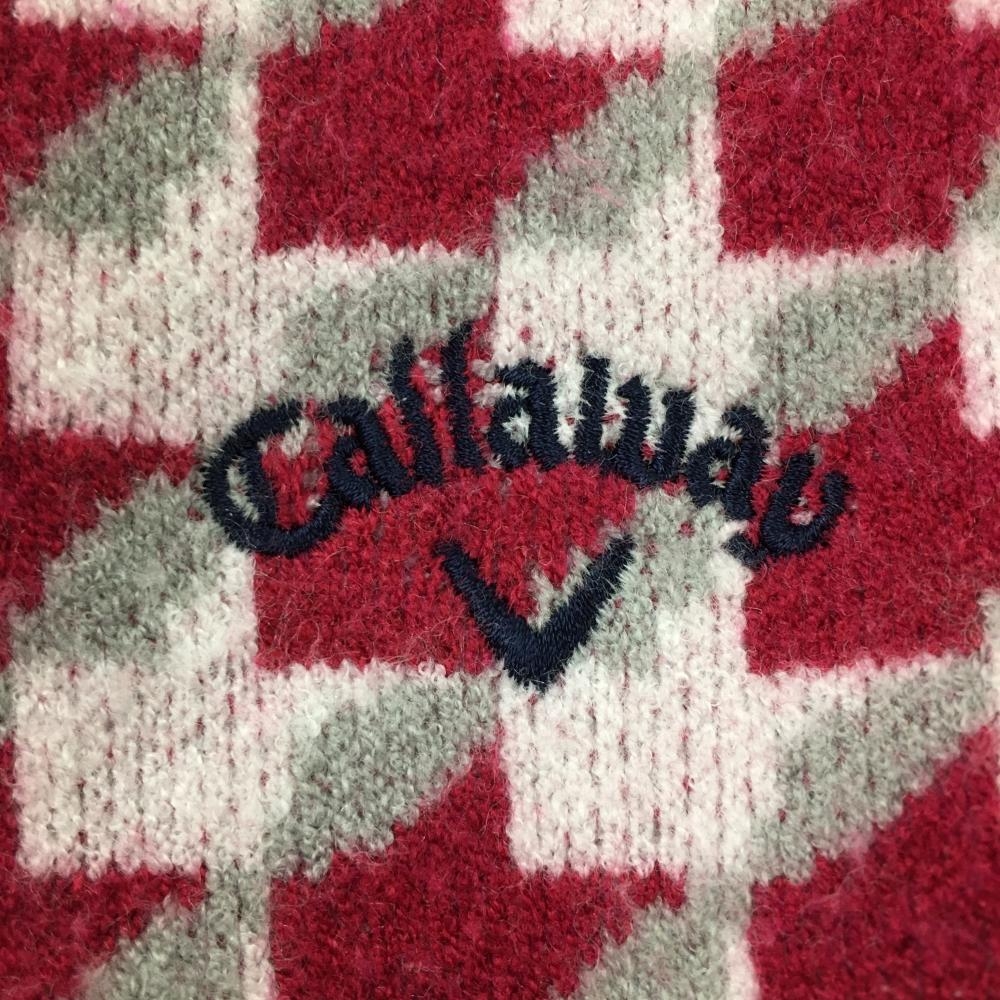 キャロウェイ セーター レッド×白 千鳥格子 Vネック 裏地付 ニット レディース S ゴルフウェア Callaway