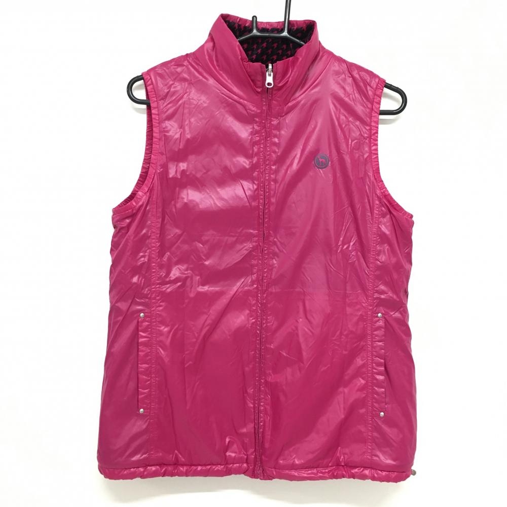 【超美品】アダバット リバーシブルベスト 黒×ピンク 千鳥格子 起毛 裏無地 レディース ゴルフウェア adabat
