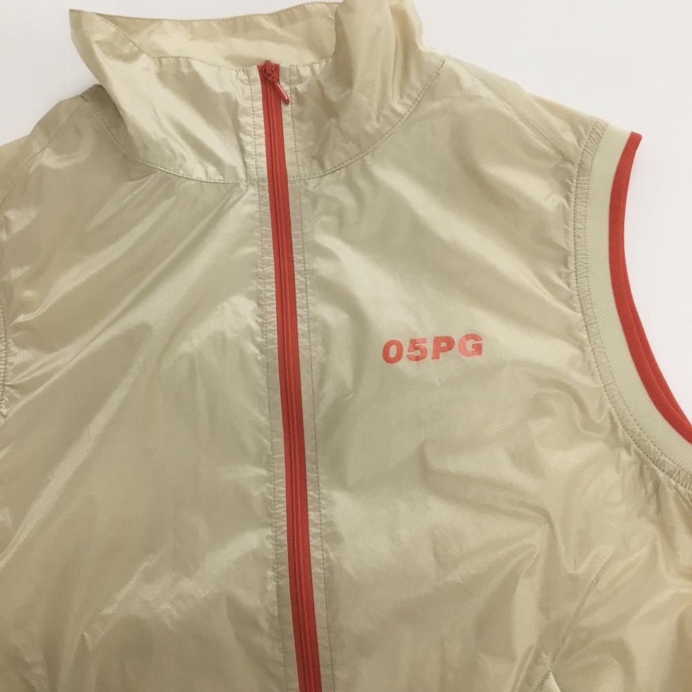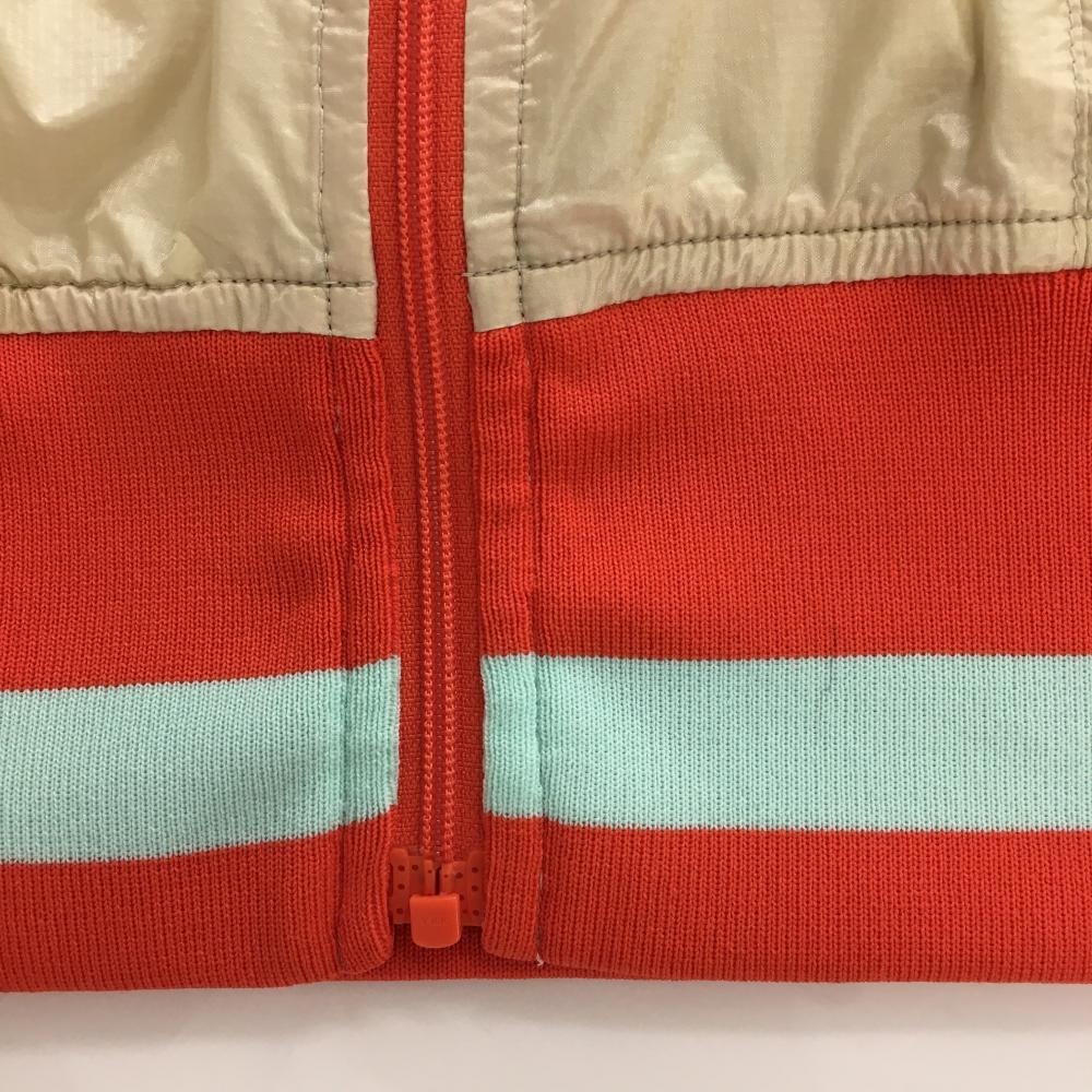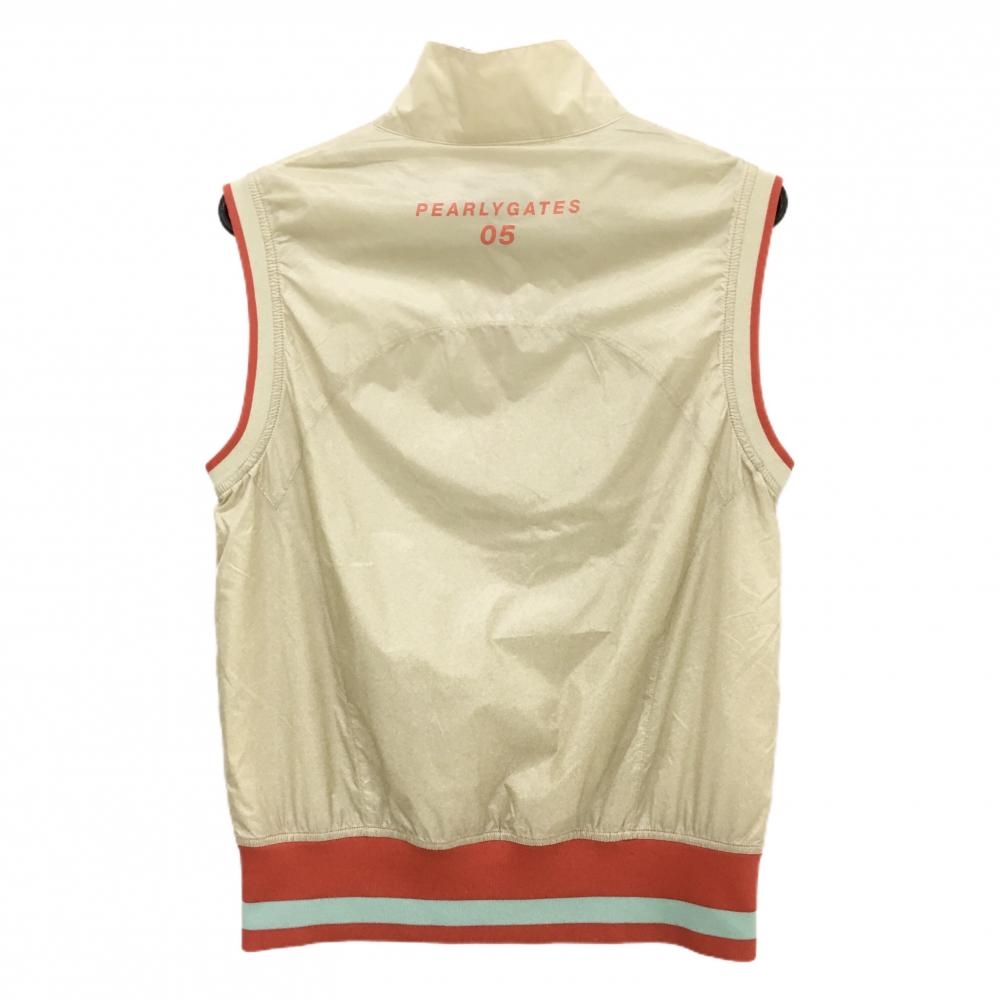 【美品】パーリーゲイツ ナイロンベスト ベージュ×オレンジ ロゴ メッシュ裏地 レディース 1(M) ゴルフウェア PEARLY GATES