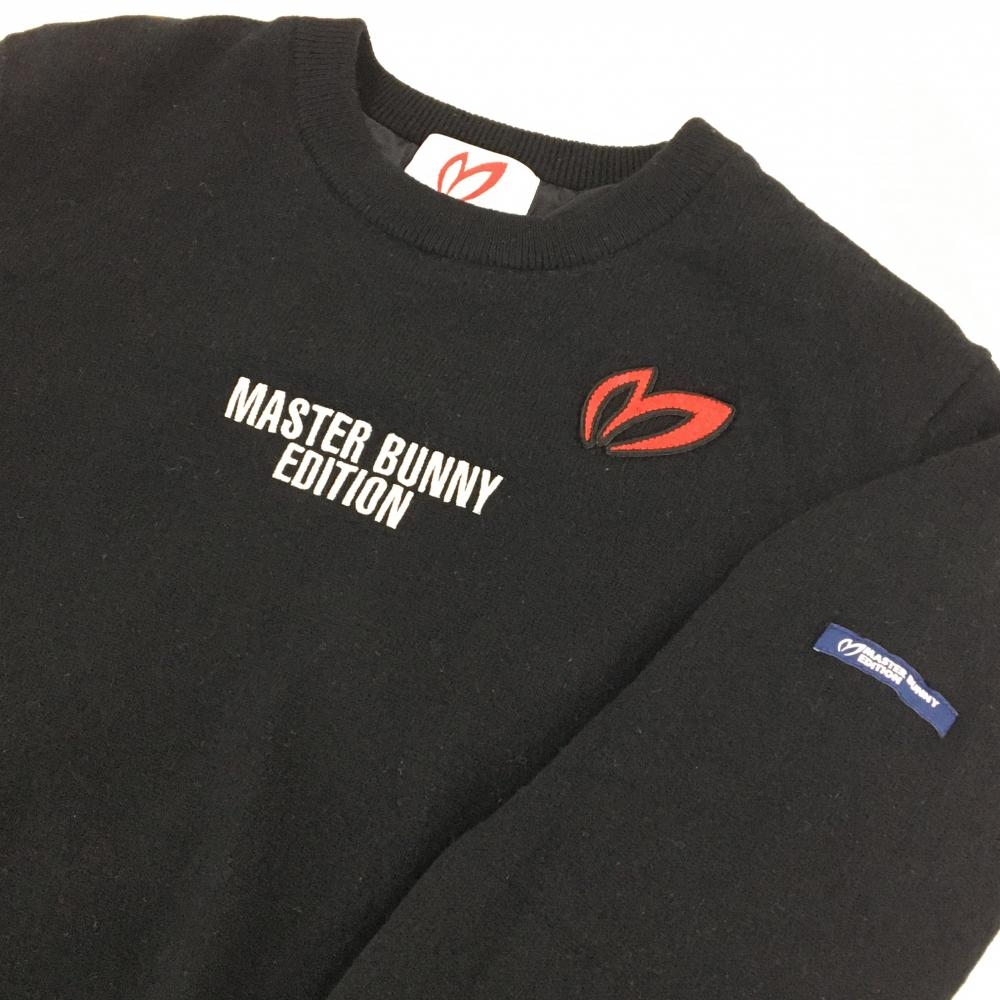 【美品】マスターバニー セーター 黒 フロントロゴ カシミヤ混 裏地付 ニット レディース 4(M) ゴルフウェア MASTER BUNNY EDITION