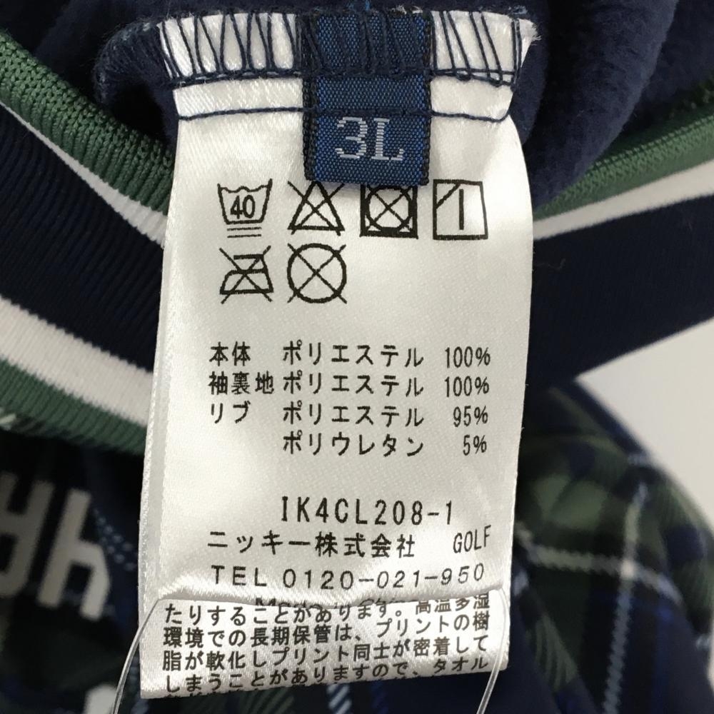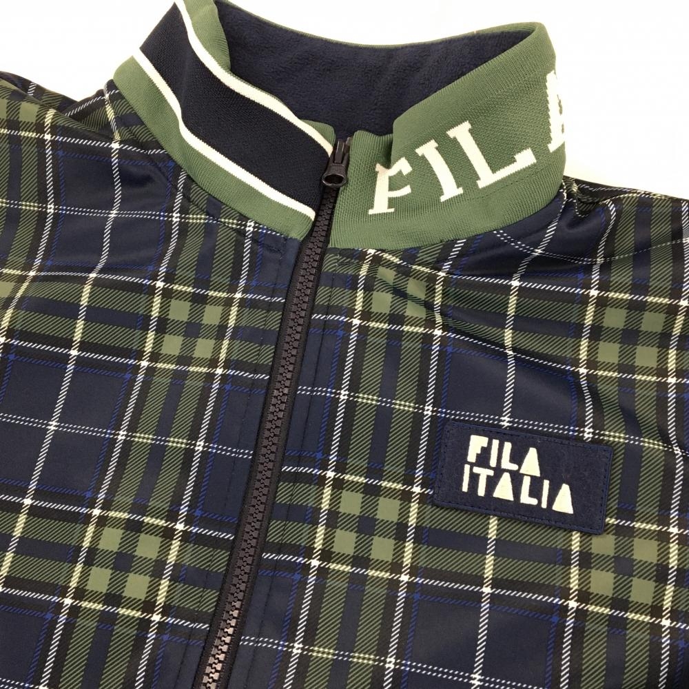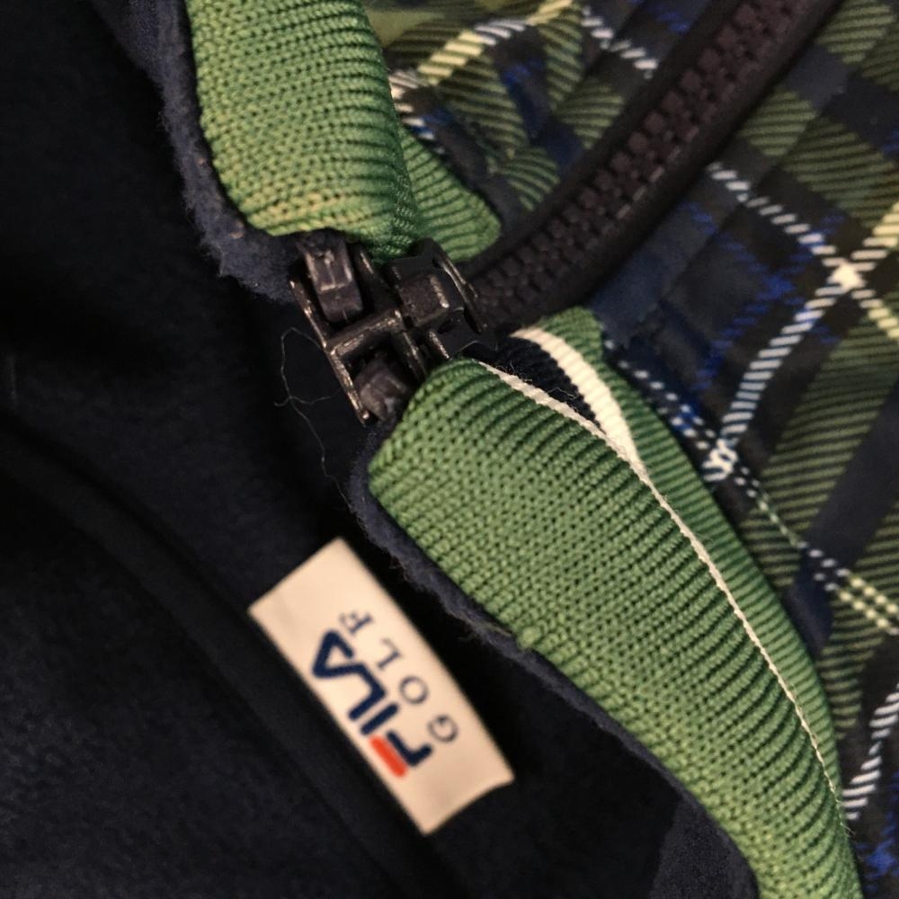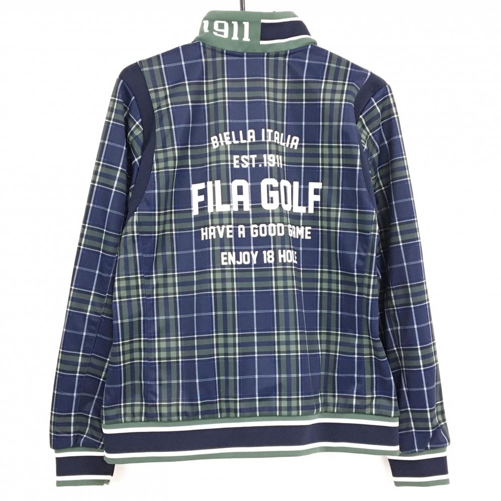 【美品】フィラゴルフ ジャケットブルゾン ネイビー×グリーン チェック 胸元ロゴワッペン レディース 3L ゴルフウェア FILA GOLF
