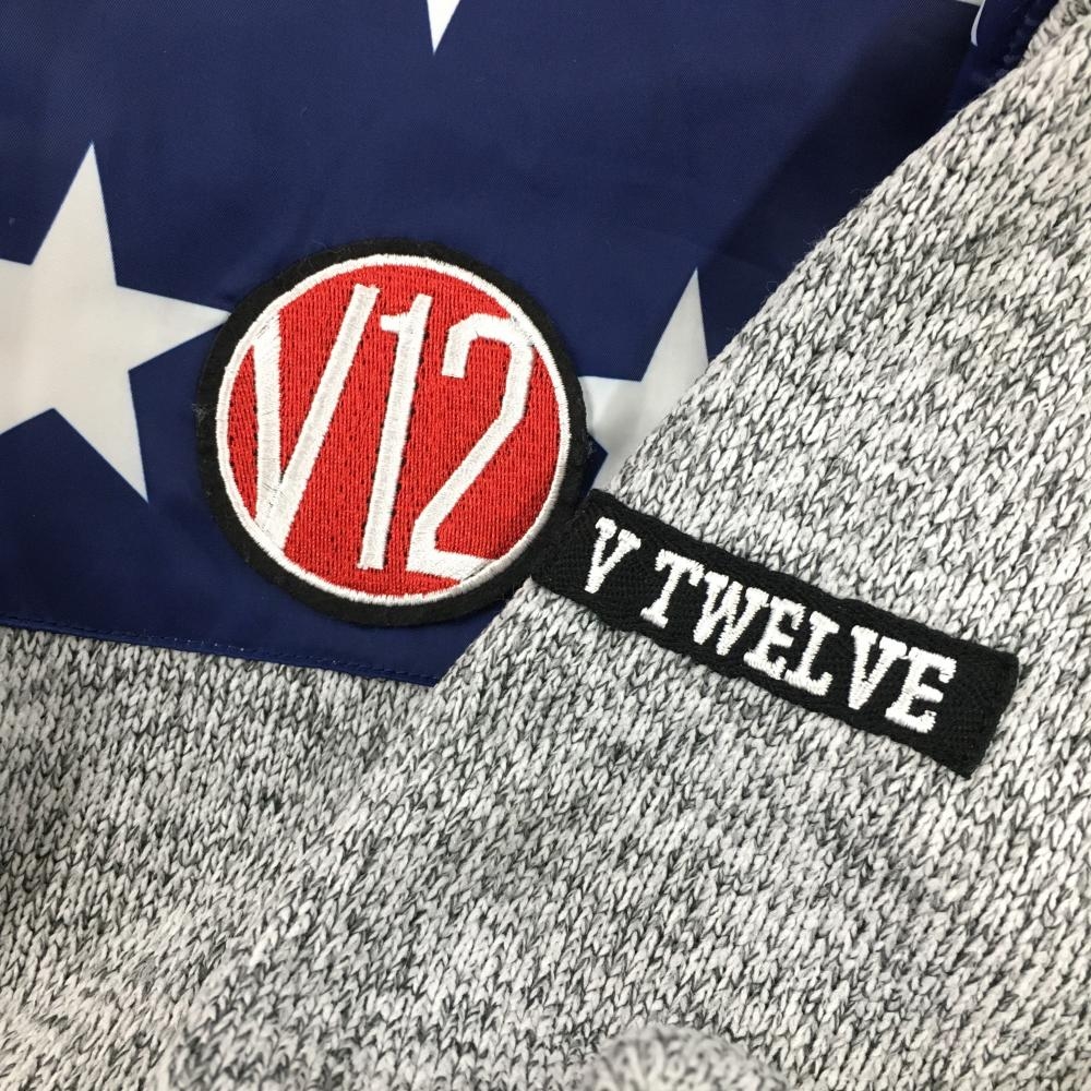 【超美品】ヴィトゥエルヴ 異素材ジャケット 杢グレー×ネイビー×白 一部星柄 裏起毛 メンズ L ゴルフウェア V12