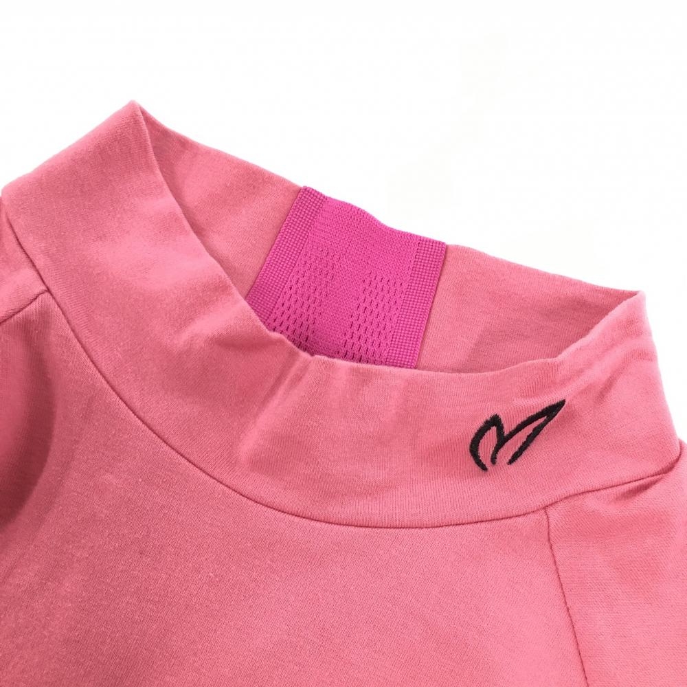 【美品】マスターバニー 長袖ハイネックシャツ ピンク ストレッチ ロゴ黒 メンズ 4(M) ゴルフウェア 2024年モデル MASTER BUNNY EDITION
