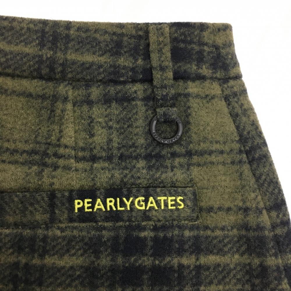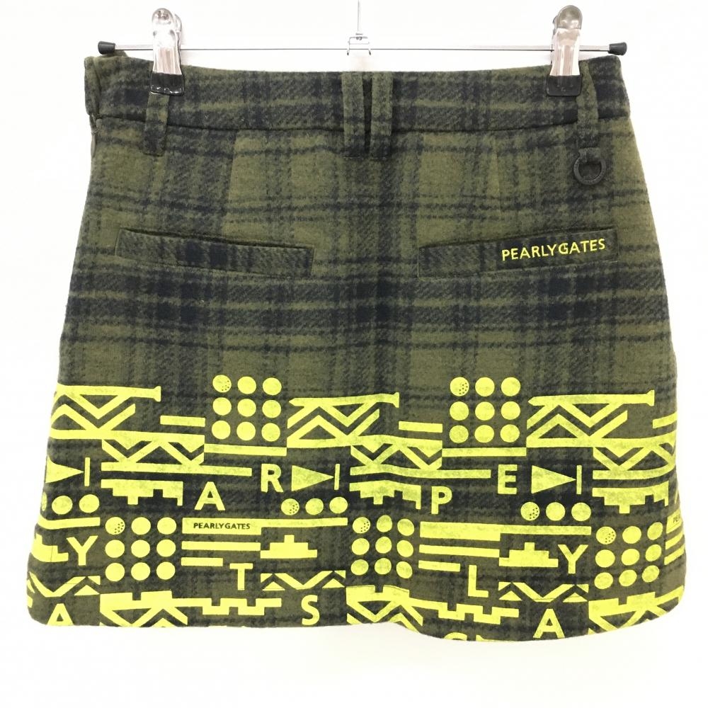 【新品】パーリーゲイツ スカート カーキ×イエロー チェック 表起毛 下部プリント レディース 0(S) ゴルフウェア PEARLY GATES