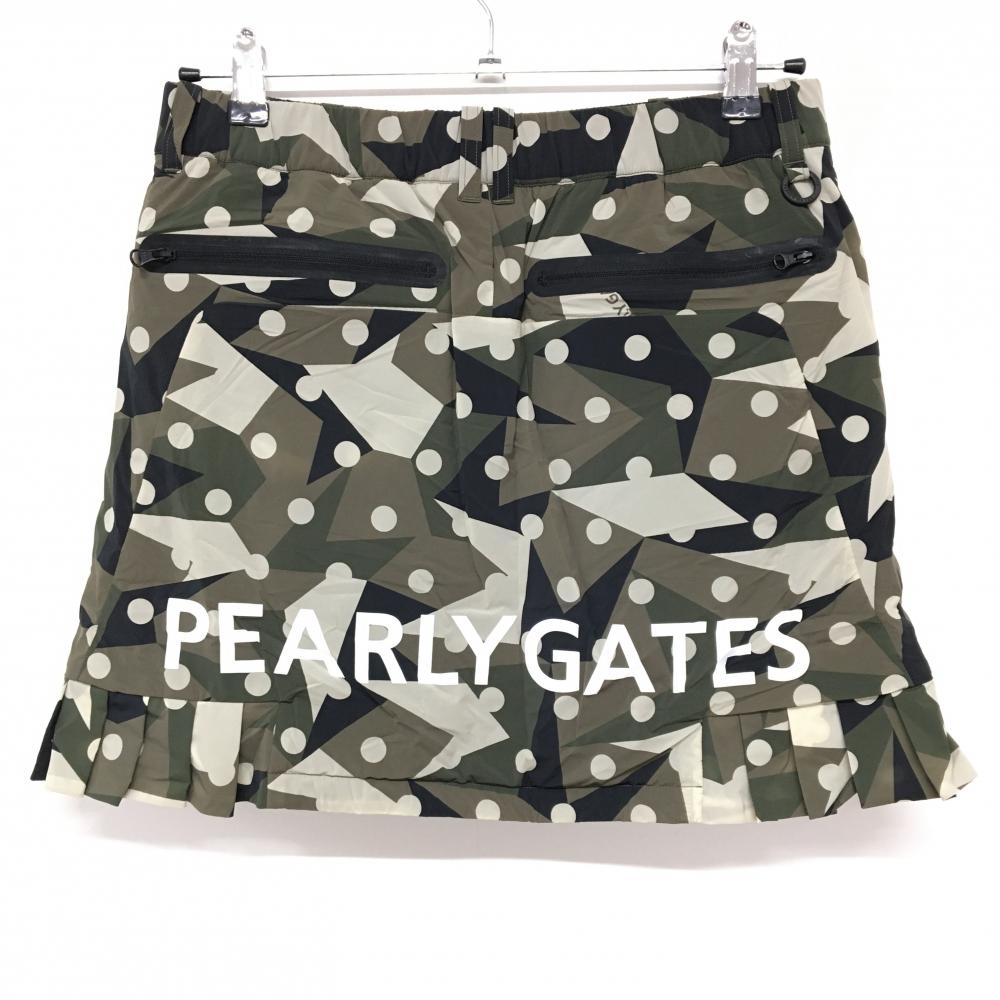 【新品】パーリーゲイツ 中綿スカート カーキ×黒 ドット柄 カモフラ風 サイドプリーツ レディース 1(M) ゴルフウェア PEARLY GATES