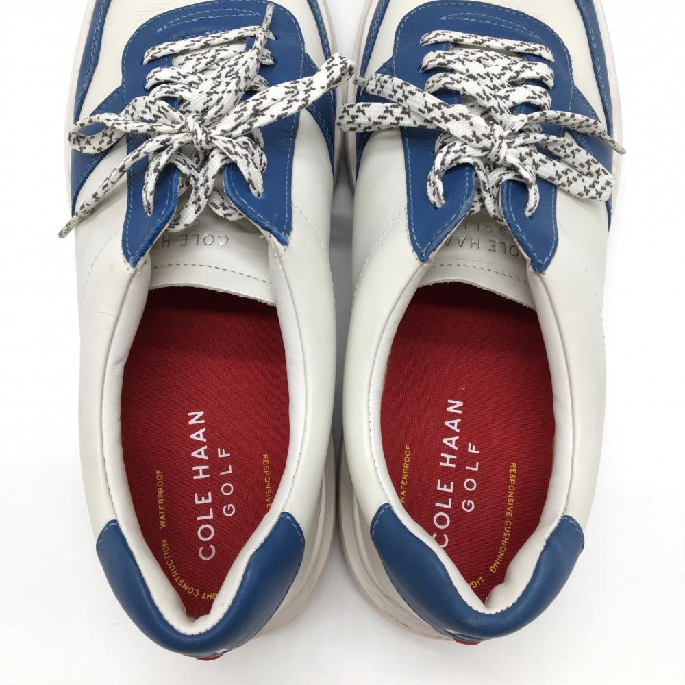 【美品】コールハーンゴルフ ゴルフシューズ 白×ブルー系 C35225 スパイクレス メンズ 9 1/2(27.0相当) ゴルフウェア COLE HAAN GOLF