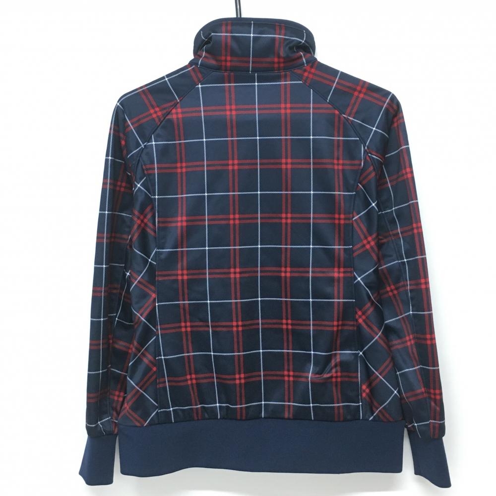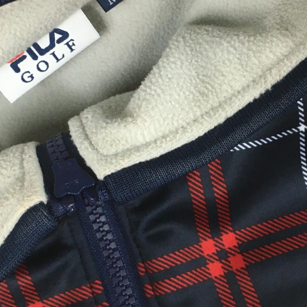 【美品】フィラゴルフ ジャケットブルゾン ネイビー×レッド×白 チェック 裏起毛 レディース M ゴルフウェア FILA GOLF