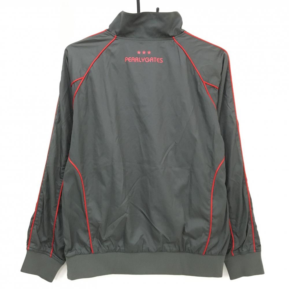 【美品】パーリーゲイツ ブルゾン カーキ×レッド ハーフジップ 蓄熱裏地 ロゴ レディース 2(L) ゴルフウェア PEARLY GATES
