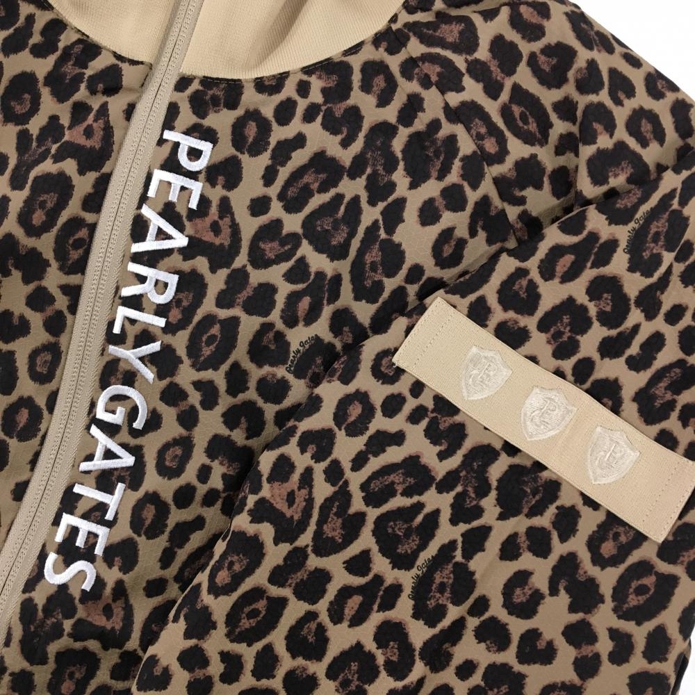 【新品】パーリーゲイツ ジャケットブルゾン ベージュ×ダークブラウン レオパード柄 ロゴ白 レディース 1(M) ゴルフウェア PEARLY GATES