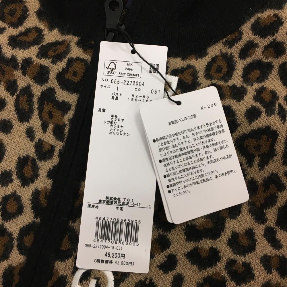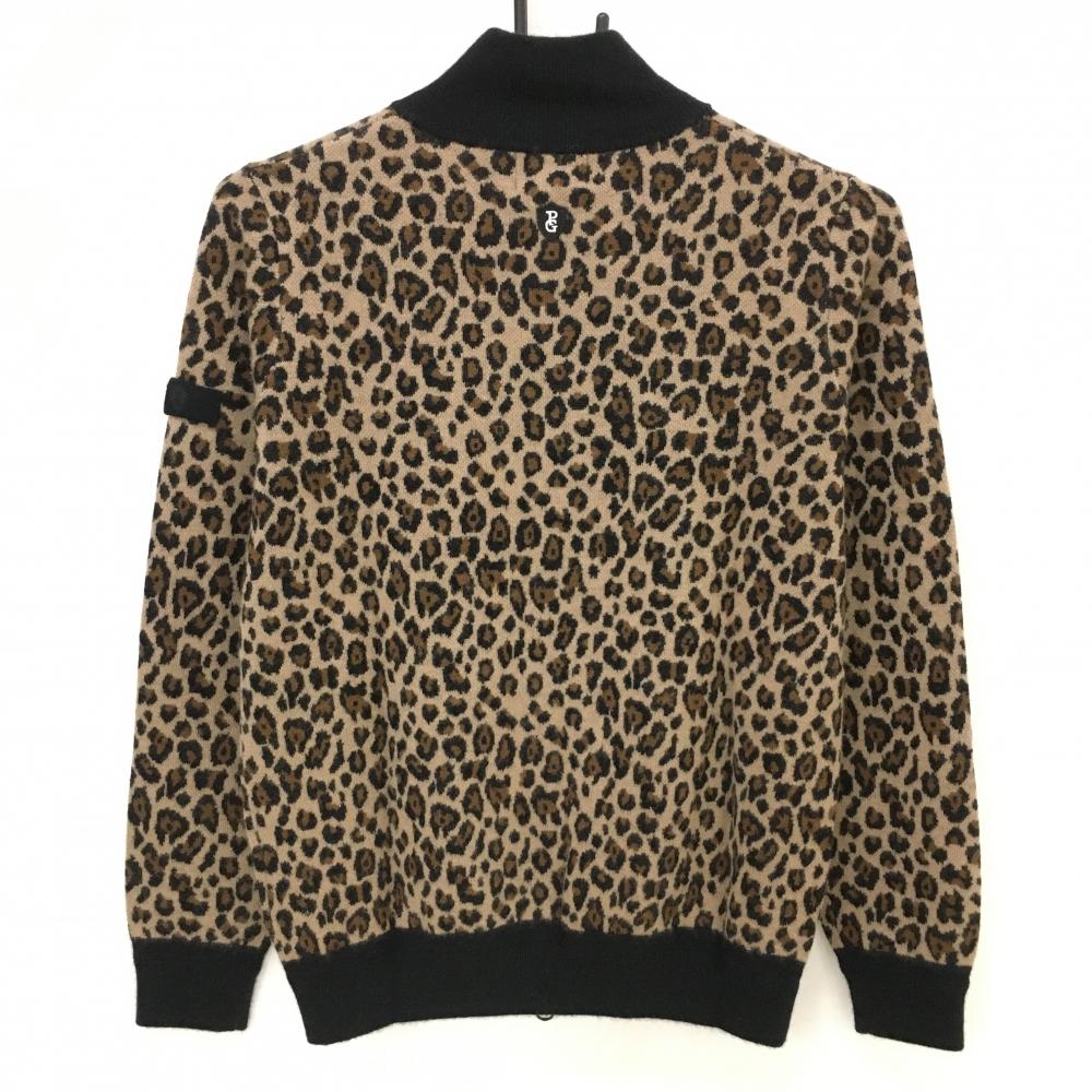 【新品】パーリーゲイツ ニットジャケット リベージュ系×黒 レオパード柄 ロゴ白 カシミヤ混 レディース 1(M) ゴルフウェア PEARLY GATES