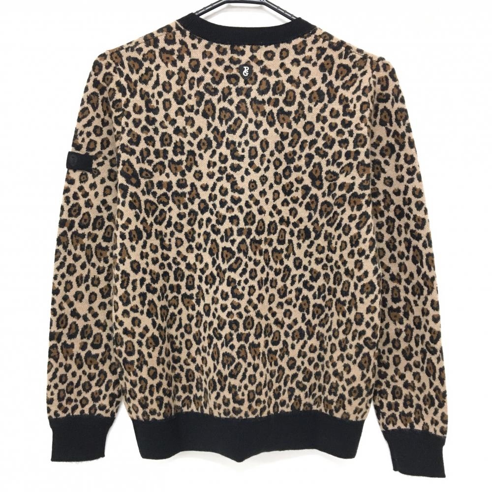 【新品】パーリーゲイツ セーター ベージュ系×黒 レオパード柄 ロゴ白 カシミヤ混 ニット レディース 1(M) ゴルフウェア PEARLY GATES