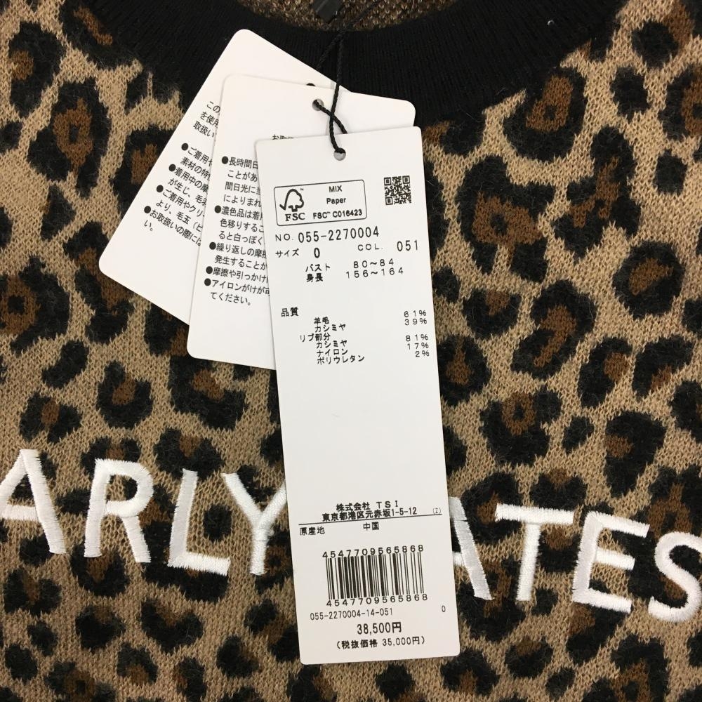 【新品】パーリーゲイツ セーター ベージュ系×黒 レオパード柄 ロゴ白 カシミヤ混 ニット レディース 0(S) ゴルフウェア PEARLY GATES