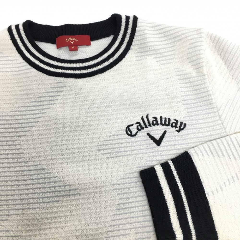 キャロウェイ レッドレーベル セーター 白×グレー 総柄 ウール混 ニット メンズ M ゴルフウェア Callaway