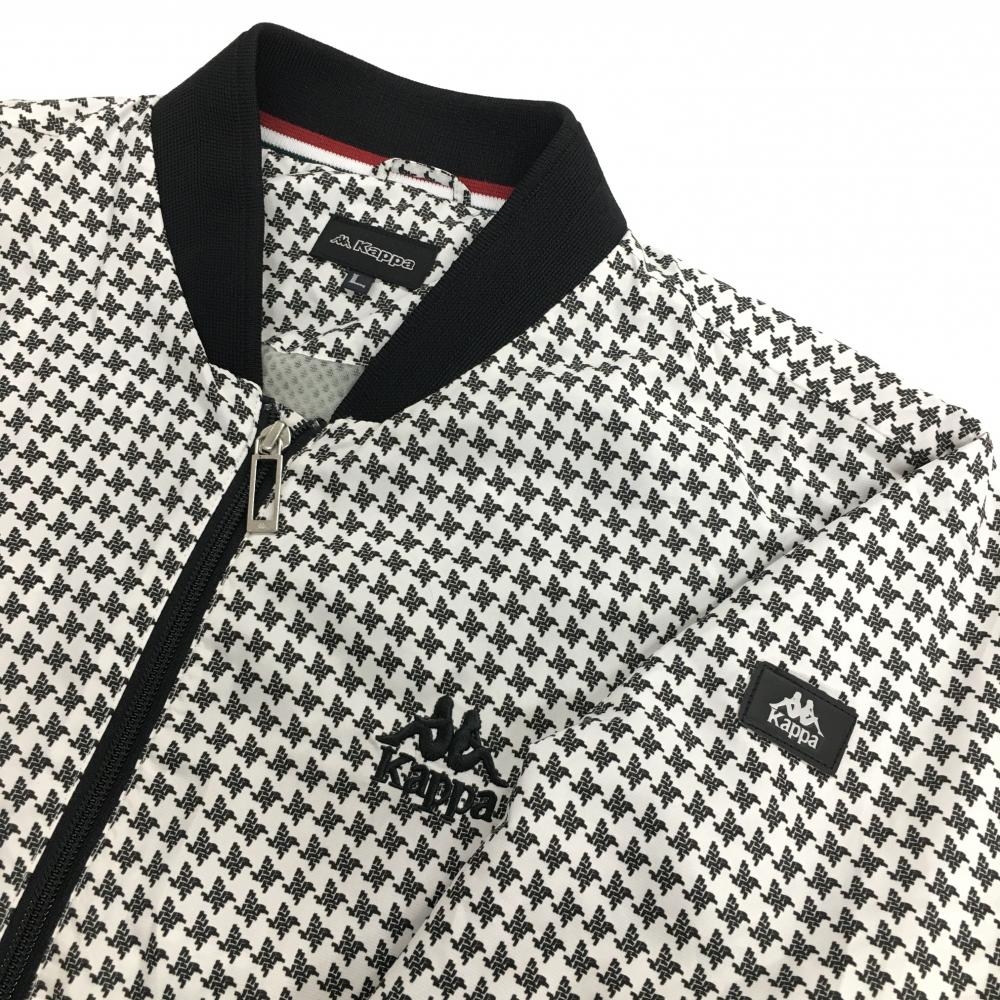 【美品】カッパ ジャケットブルゾン 白×黒 千鳥総柄 ダブルジップ 裏地メッシュ メンズ L ゴルフウェア Kappa