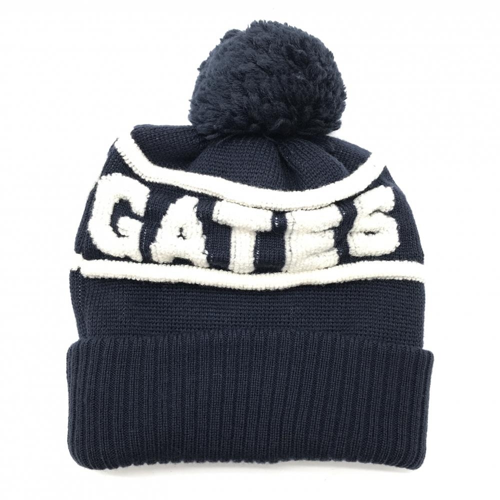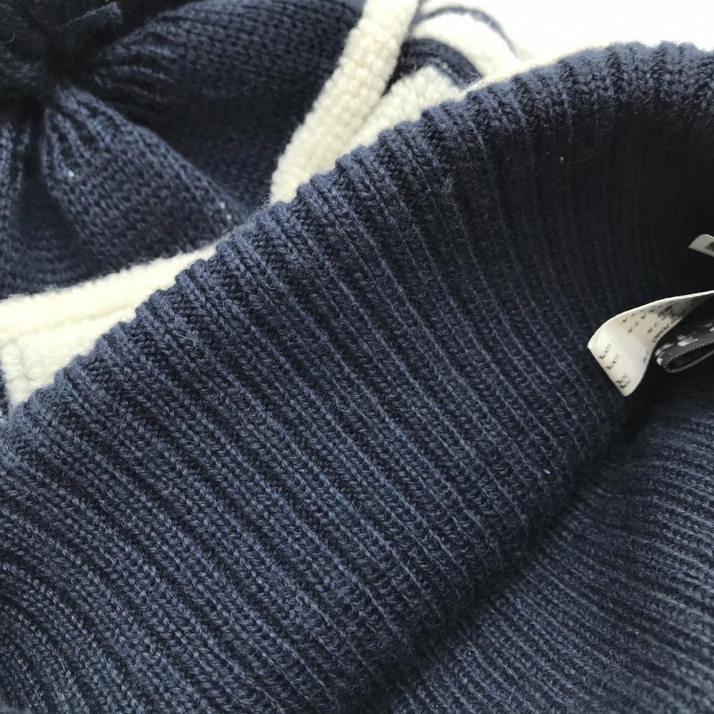 パーリーゲイツ ニット帽 ネイビー×白 立体ロゴ ボンボン付 FR ゴルフウェア PEARLY GATES