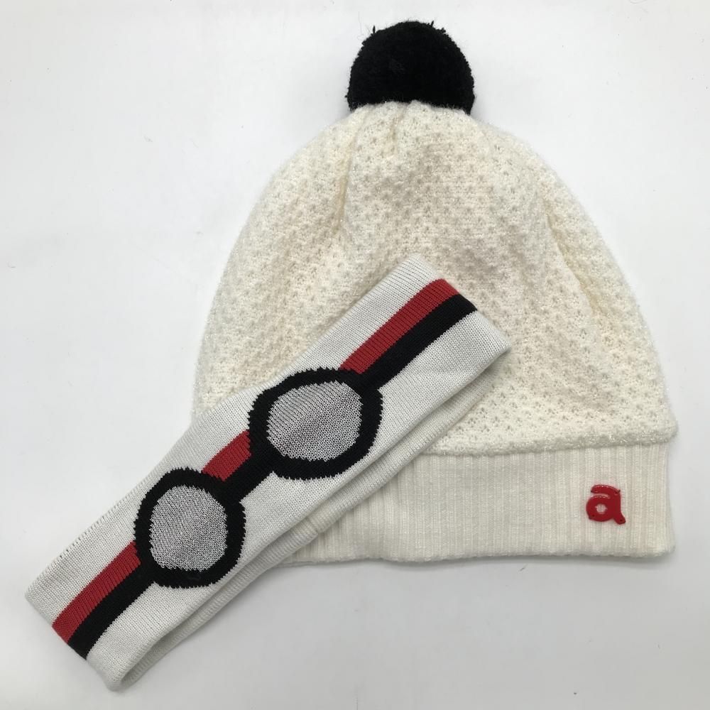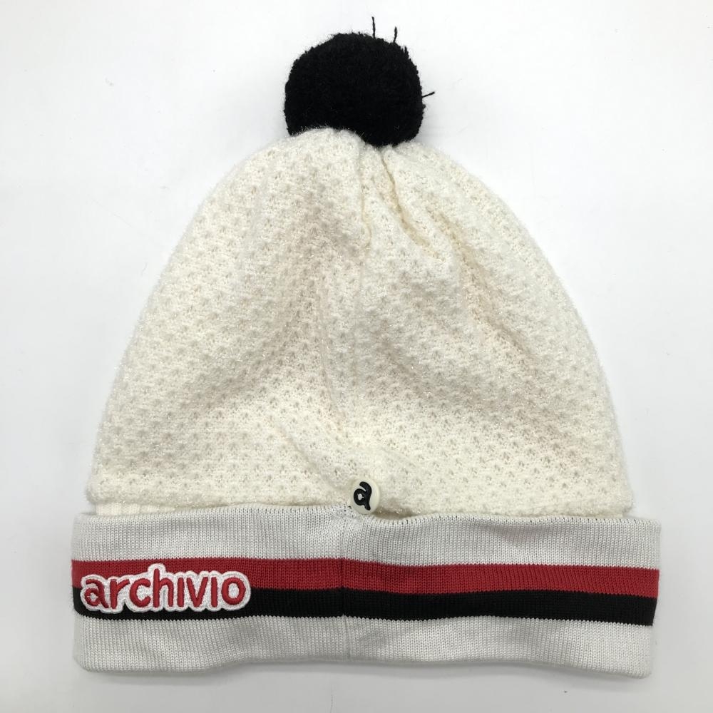【美品】アルチビオ 2WAYニット帽 白×黒 ラメ ボンボン付 レディース ゴルフウェア archivio