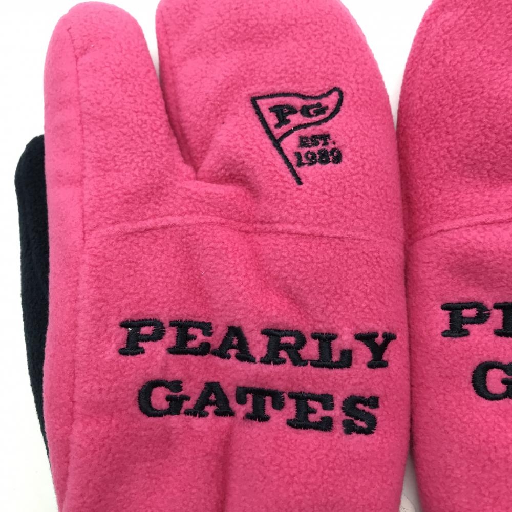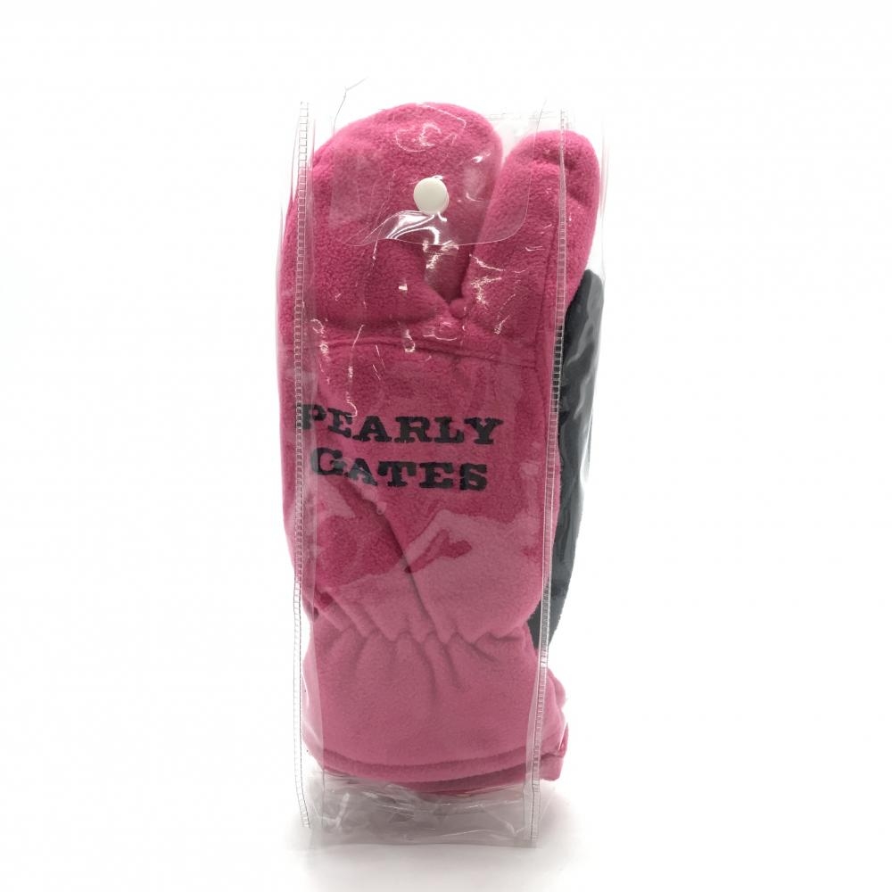 【新品】パーリーゲイツ 手袋 ピンク×ネイビー フリース ロゴ刺しゅう ミトングローブ レディース S ゴルフウェア PEARLY GATES