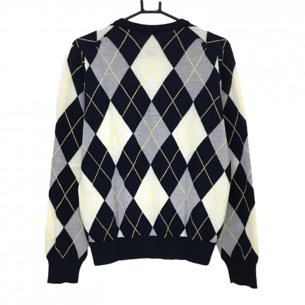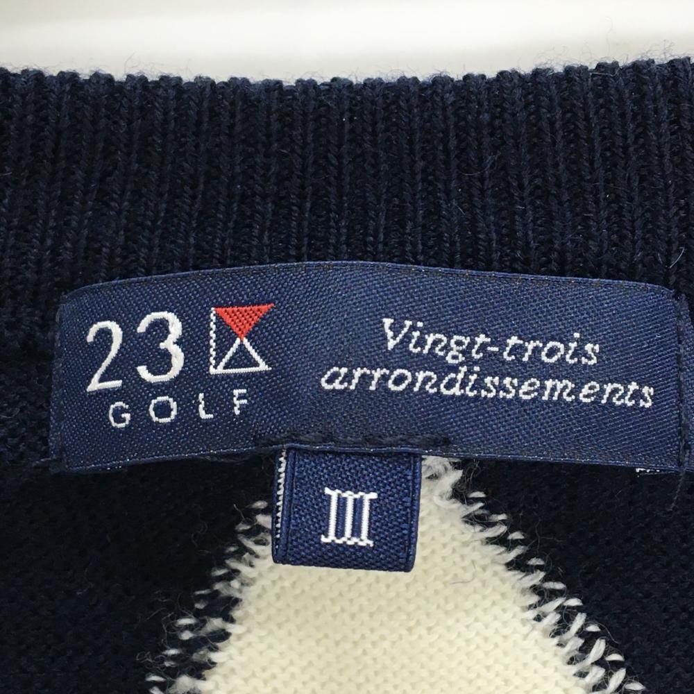 【美品】23区ゴルフ セーター ネイビー×グレー アーガイル柄 ウール混 ニット レディース III(XL) ゴルフウェア 23区