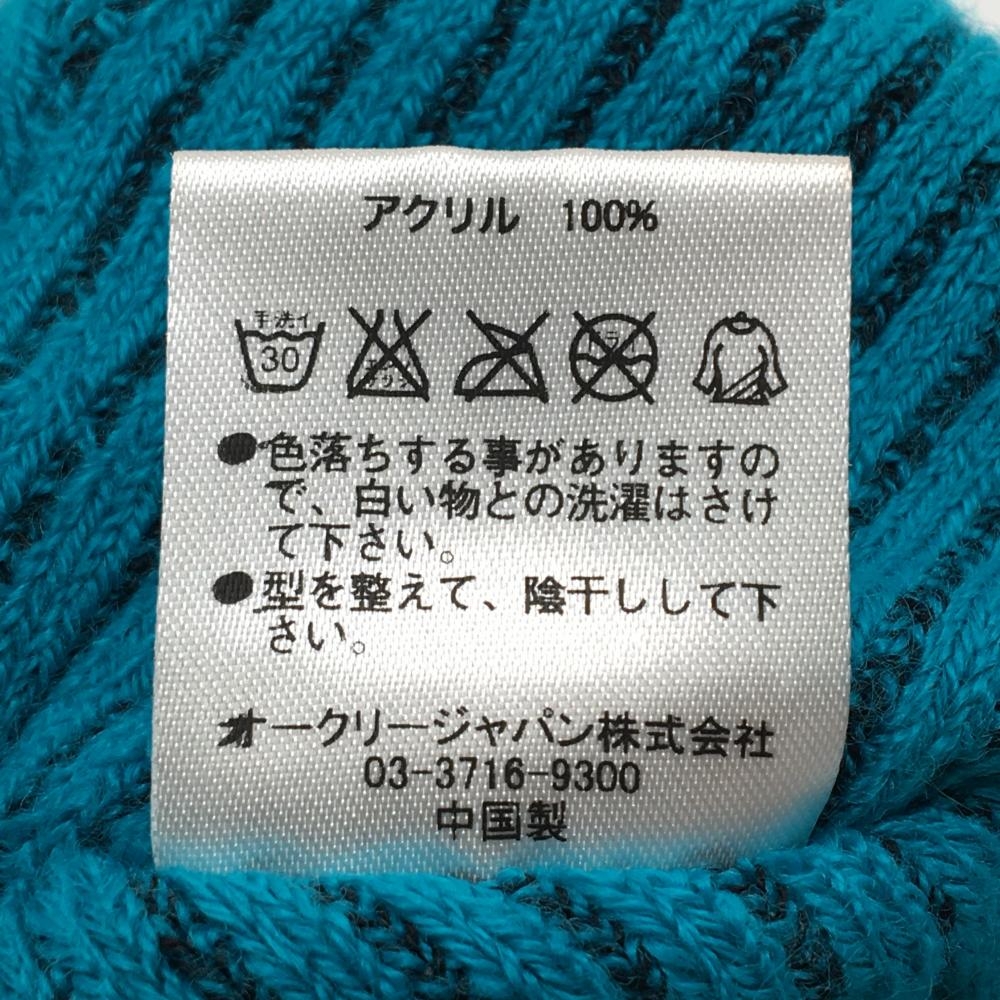 【超美品】オークリー ニット帽 ブルー×白 ロゴ総柄 ゴルフウェア Oakley