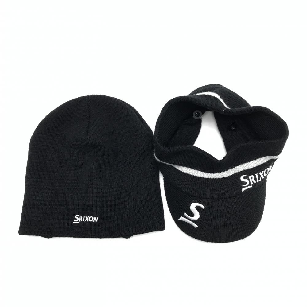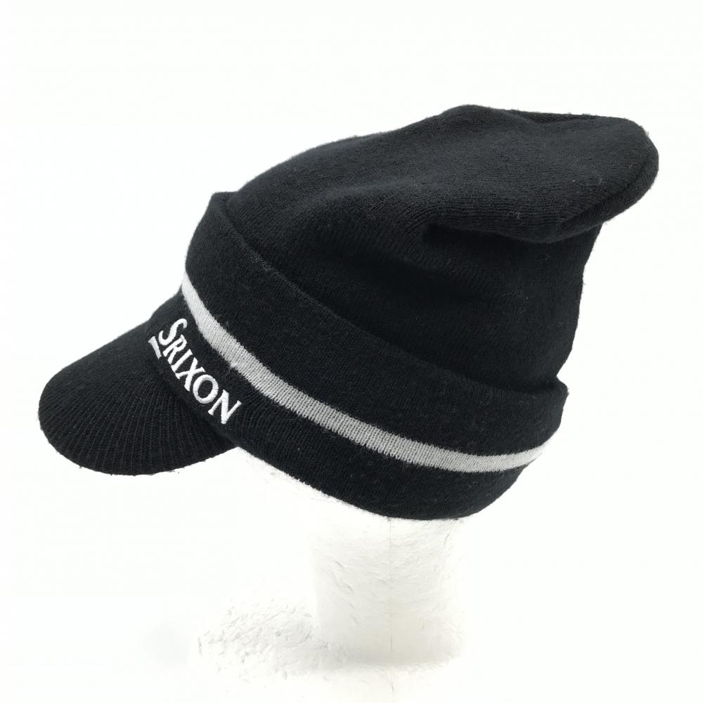 【美品】スリクソン 3WAYつば付きニット帽 黒×白 ロゴ サンバイザー ニット帽 フリーサイズ ゴルフウェア SRIXON